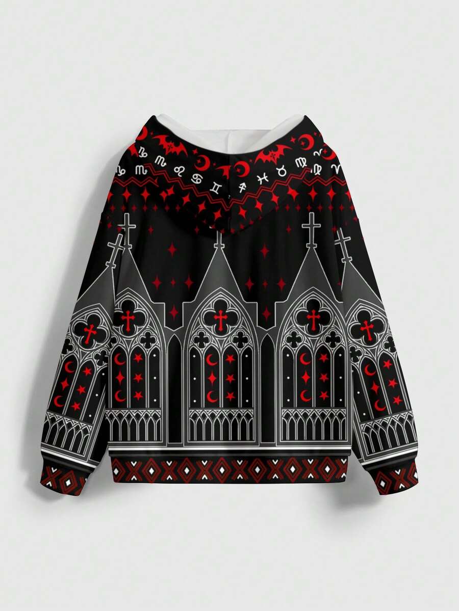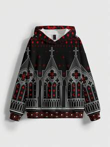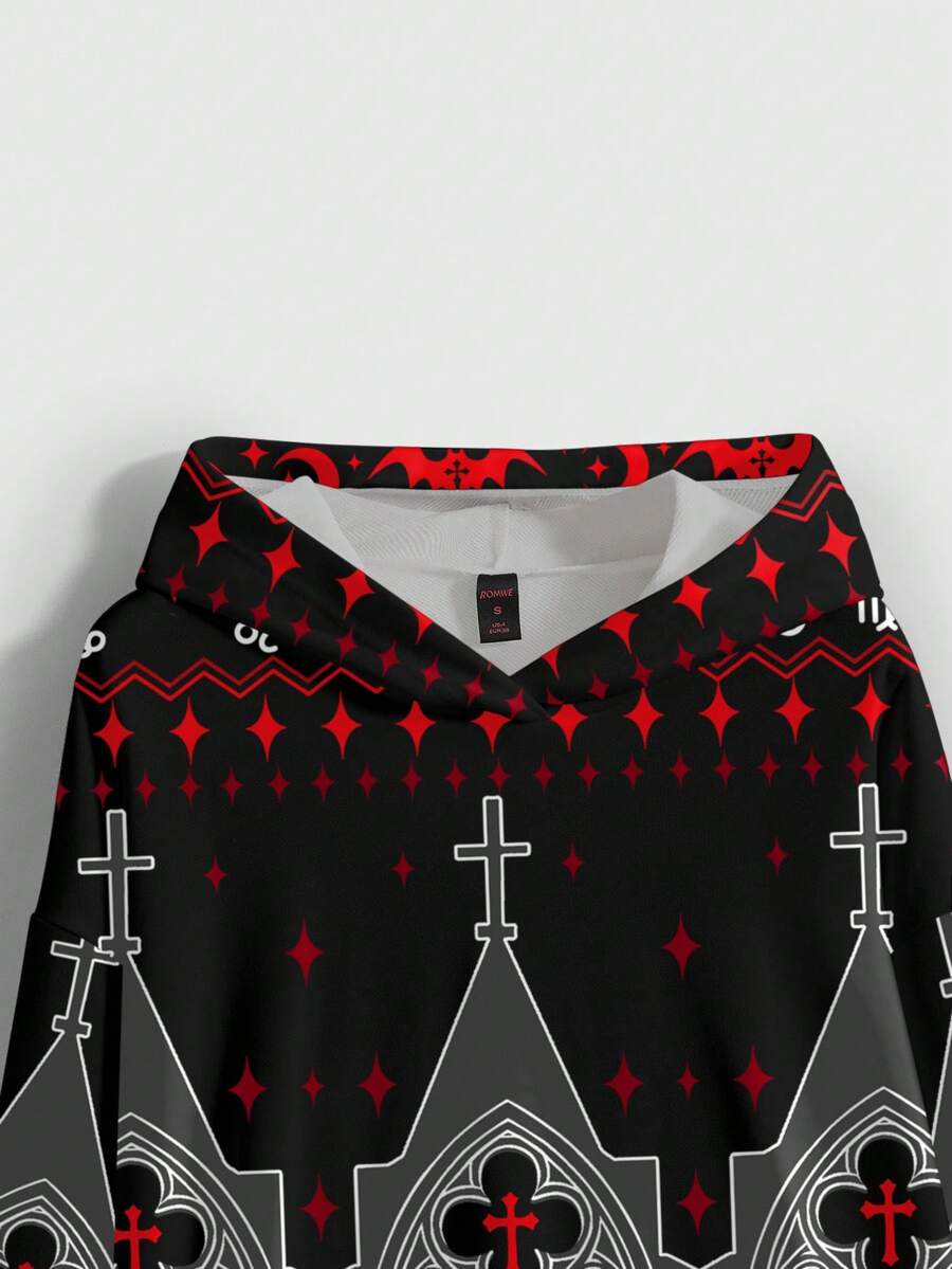 Gothic Cross All-Over Print Loose Fit Hoodie Sweatshirt For Women
