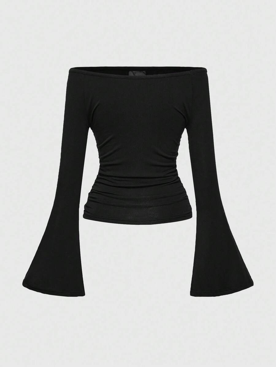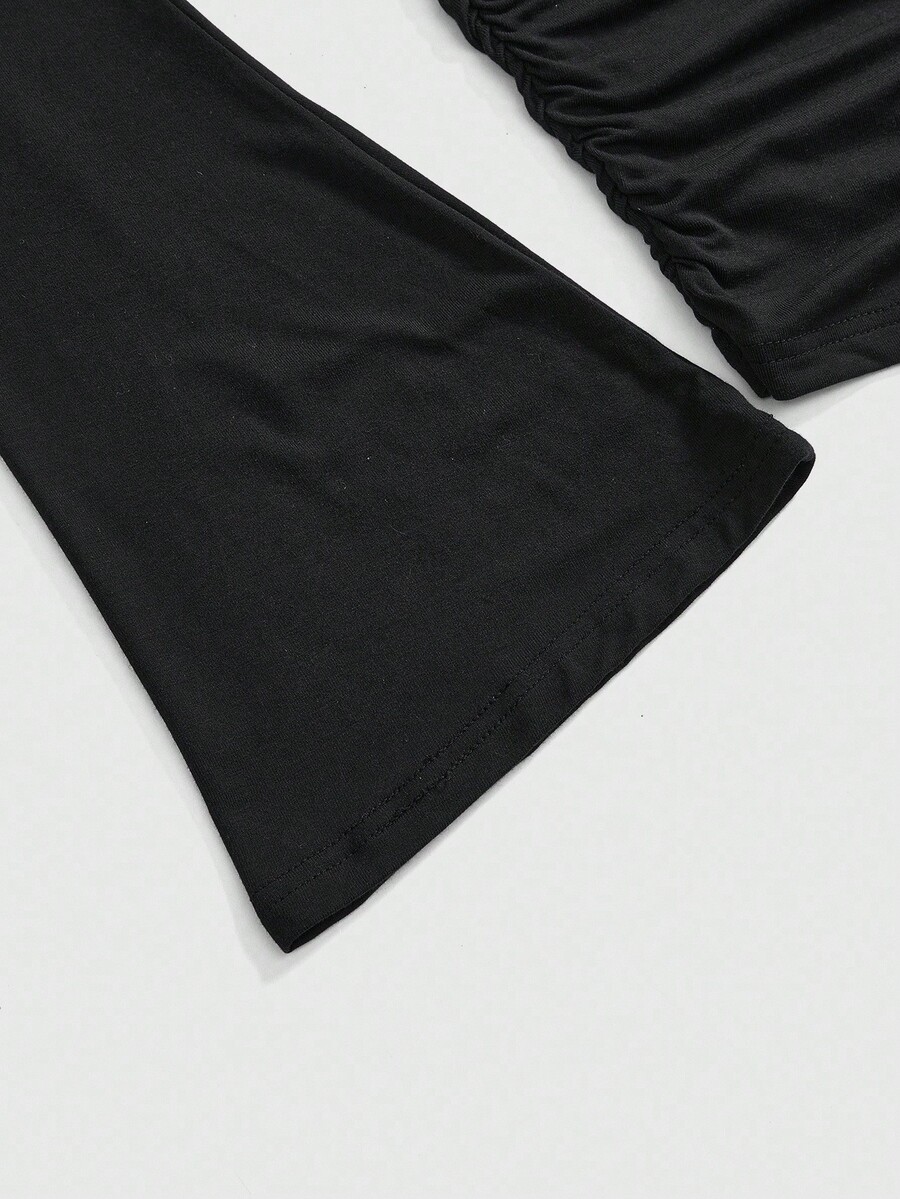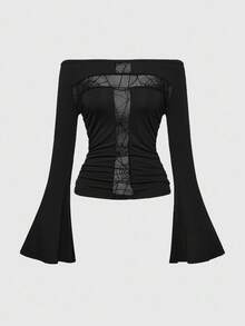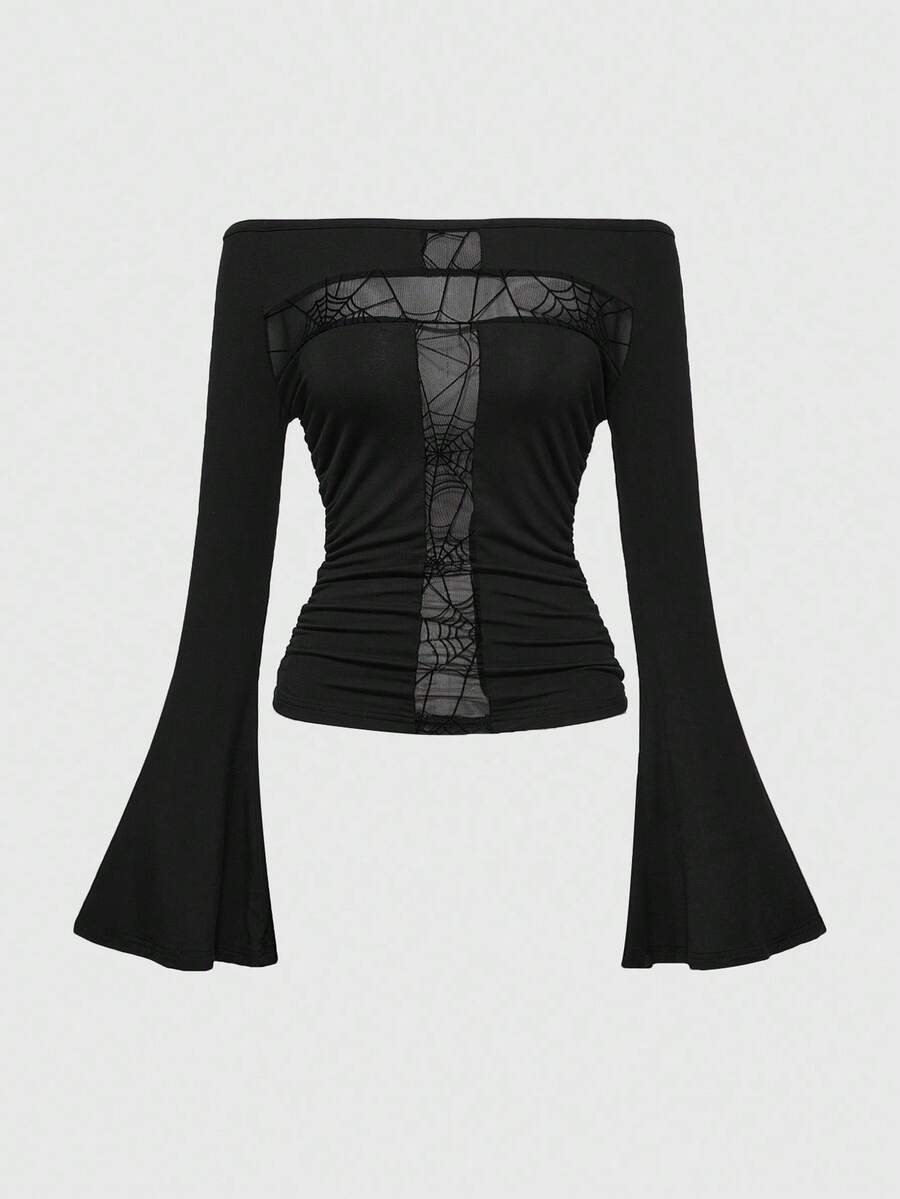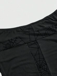 Gothic Cross Flocked Hollow Out Scoop Neck Form-Fitting Women T-Shirt