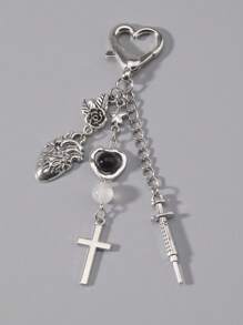 Gothic Cross, Heart, Rose, Star Pendant Keychain