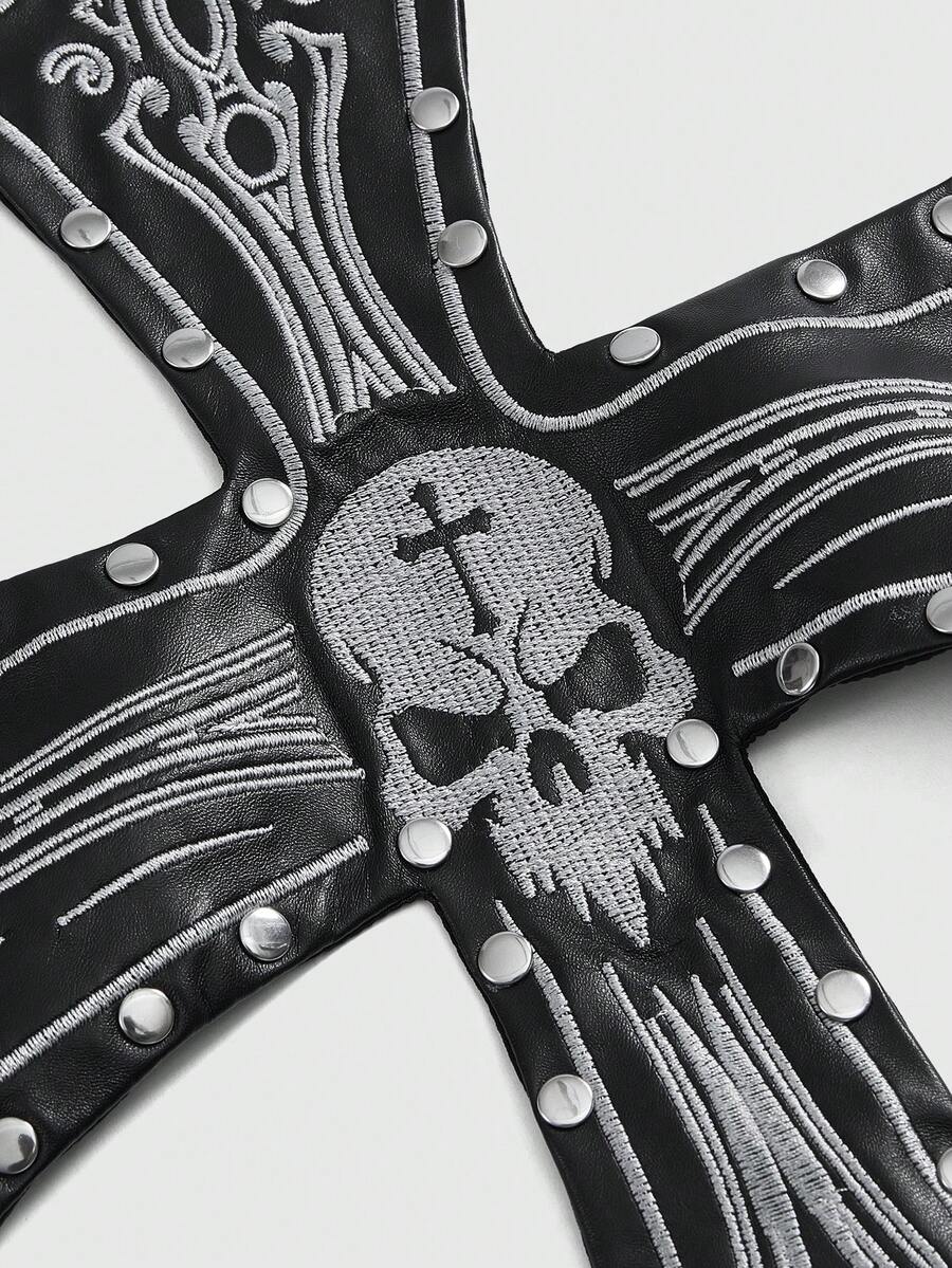 Gothic Cross & Skull Print Studded Sexy Backless Summer Beach Blouse For Women