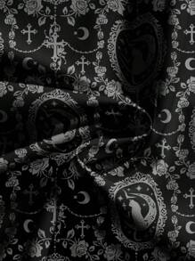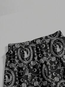 Goth Gothic Dark Cat Cross Moon Palace Luxurious Dark Horror Romantic Vine Print Black Plus Size Pants, Halloween