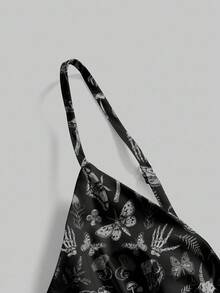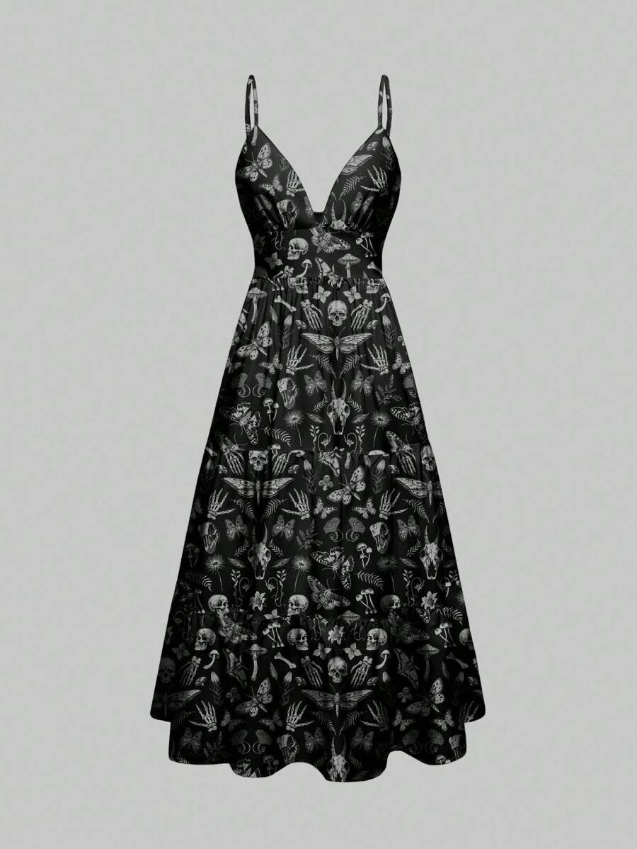 Goth Gothic Dark Horror Mysterious Plant Mushroom Skull Moth Print Women's Dress