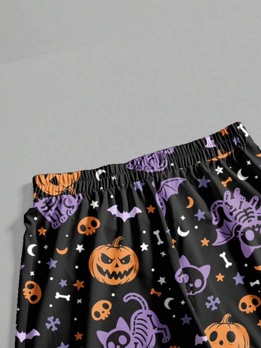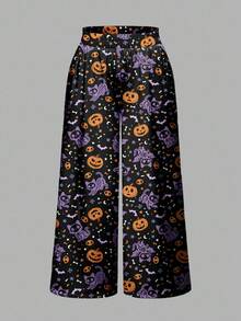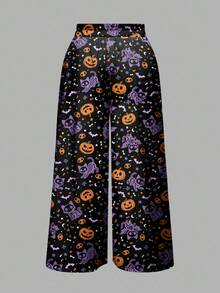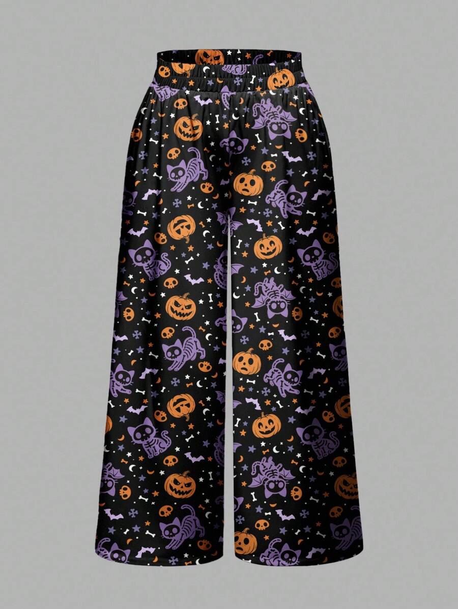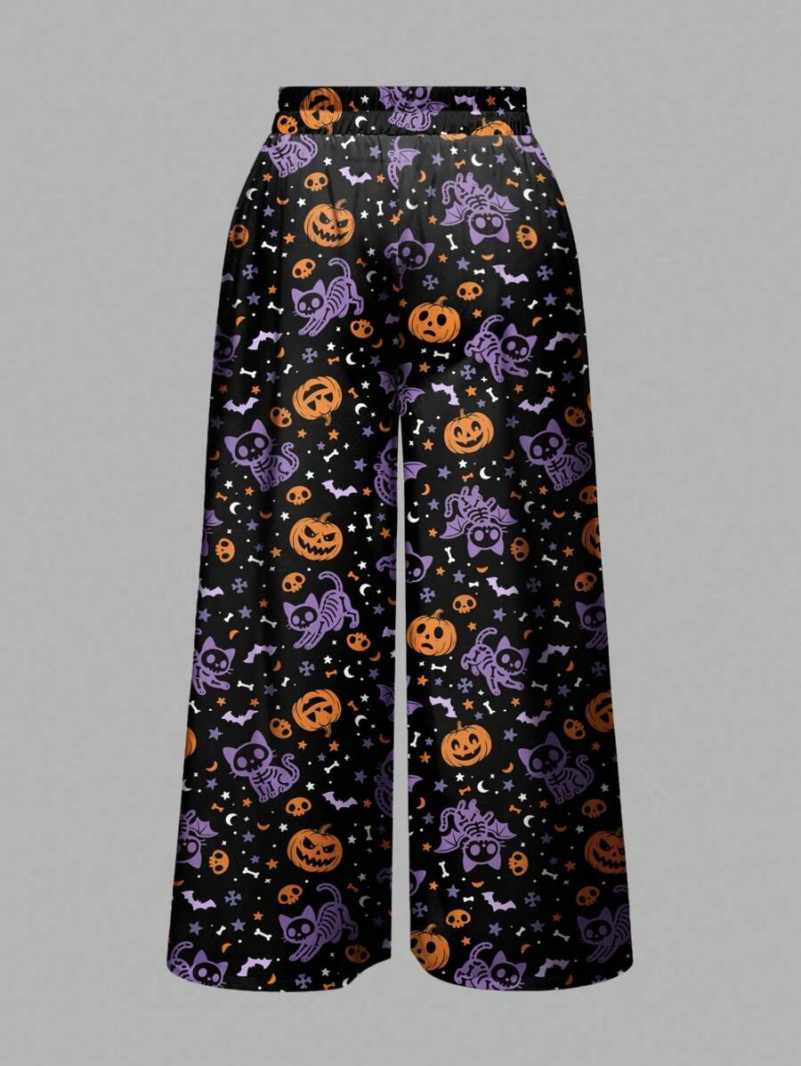 Gothic Dark Mysterious Horror Witch Halloween Pumpkin Skull Cat Bat All-Over Print Loose Wide Leg Plus Size Pants
