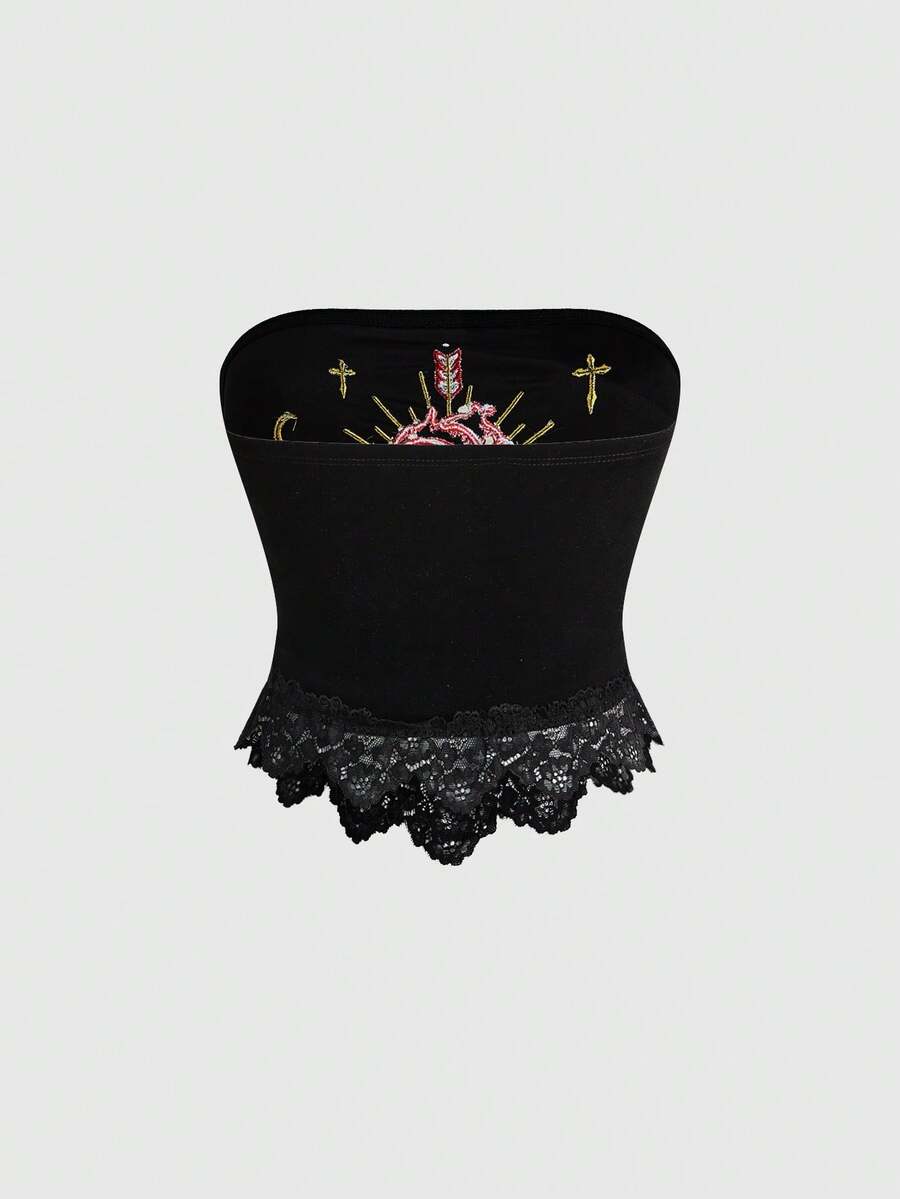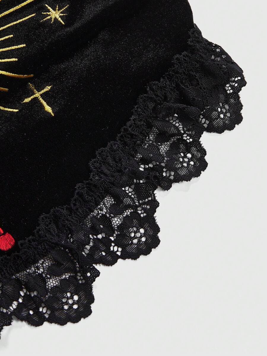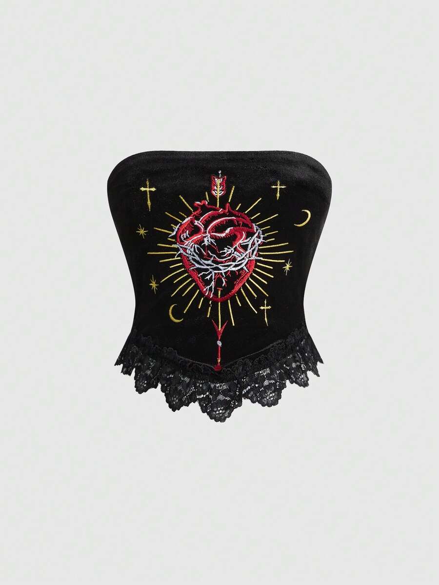 Gothic Dark Romantic Palace-Style Heart Embroidery Velvet & Contrast Lace Sexy Cropped Camisole Top For Women