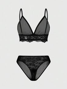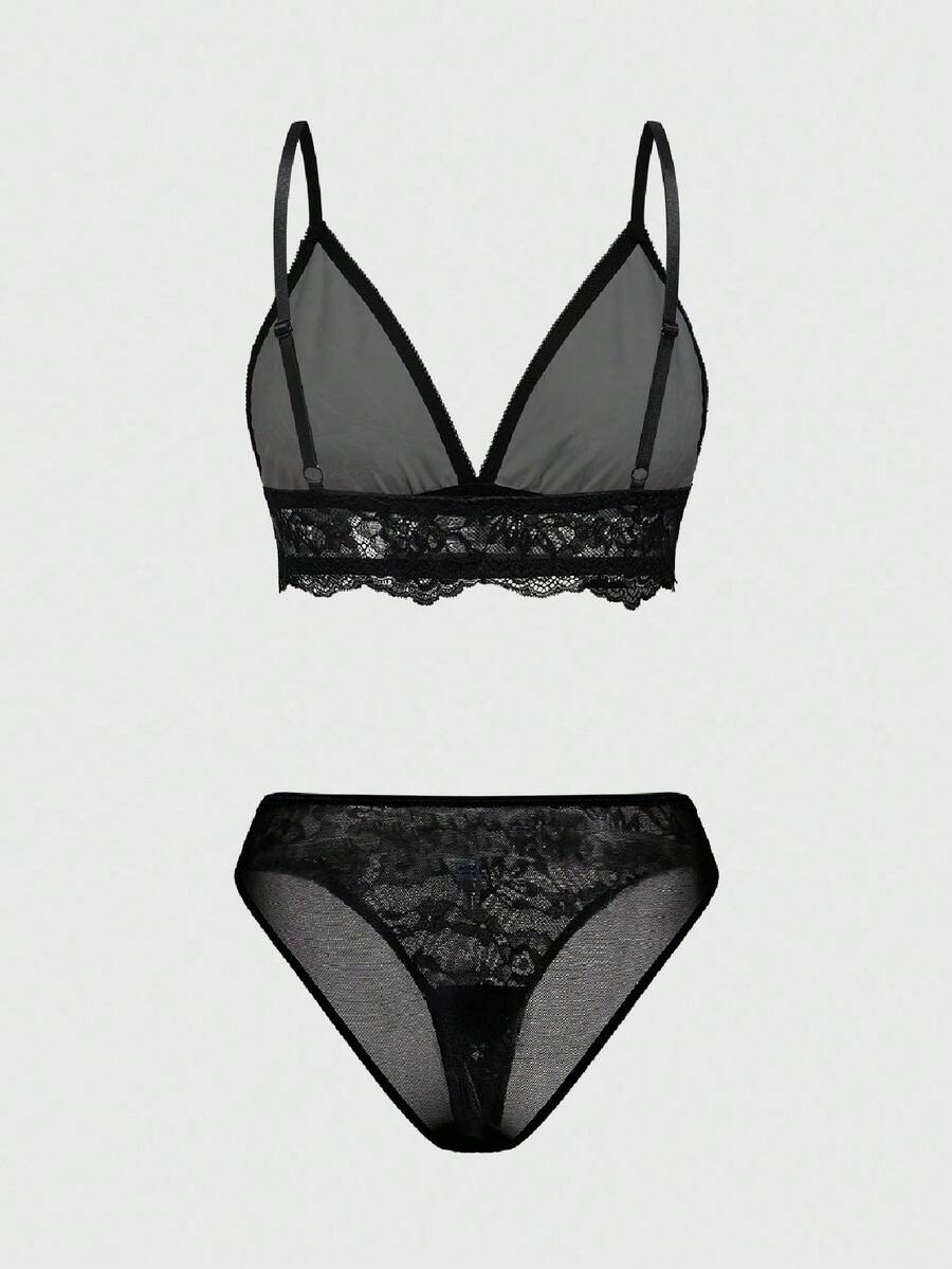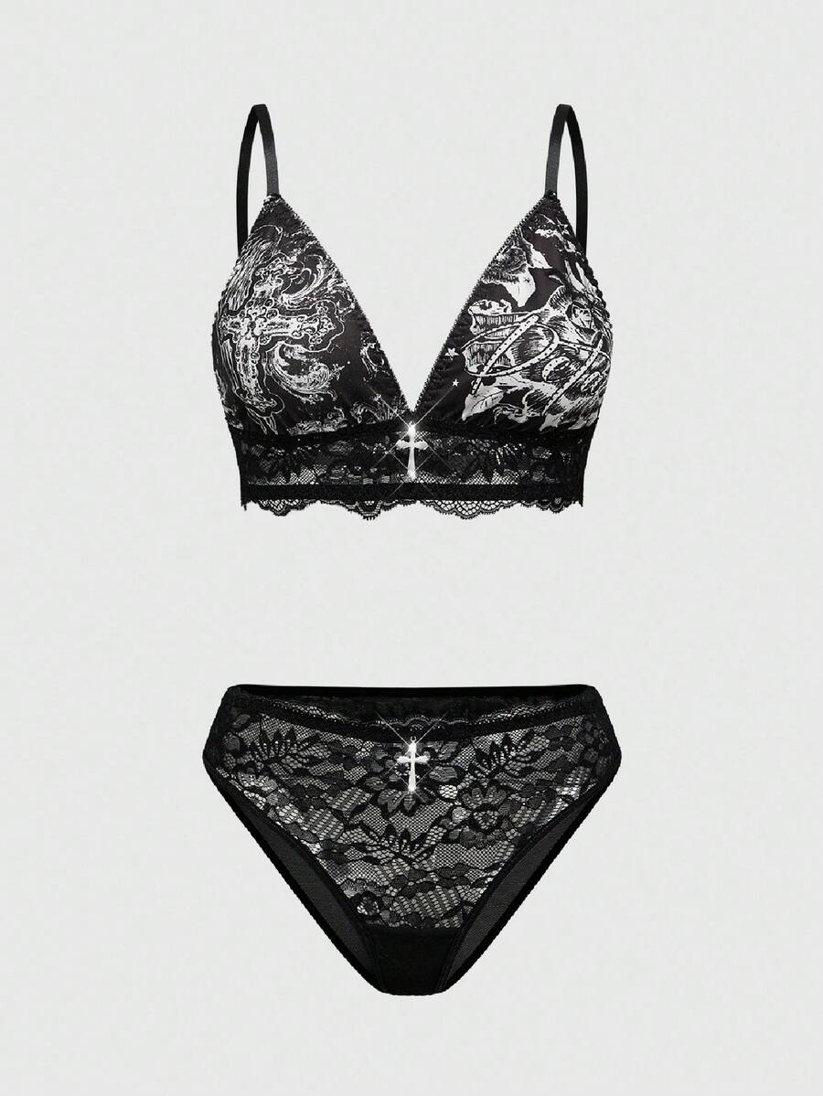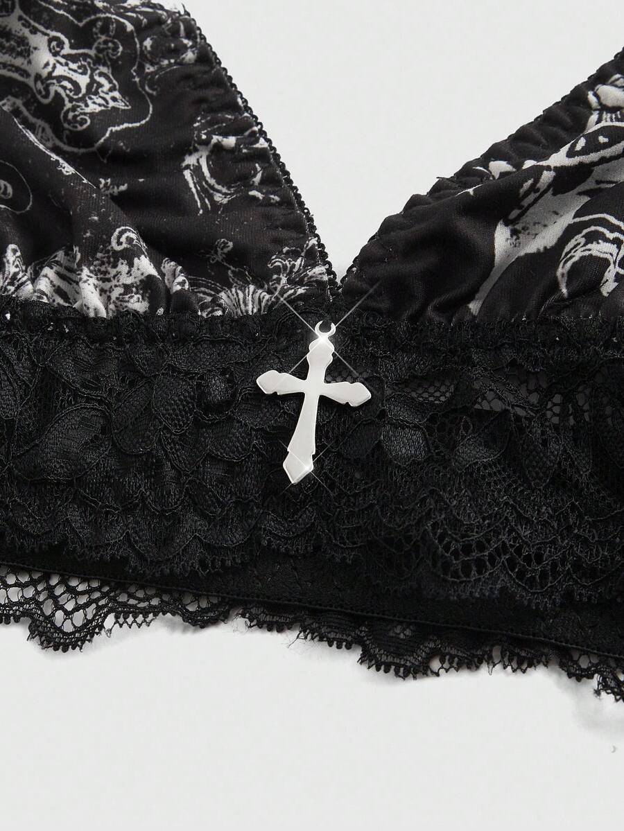 Gothic Dark Skeleton Floral Cross Bralette & Lace Trim Thong Brief Sets