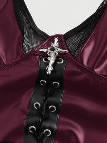 Goth Gothic Mesh Patchwork Lace-Up Plus Size Women Leather Suspender