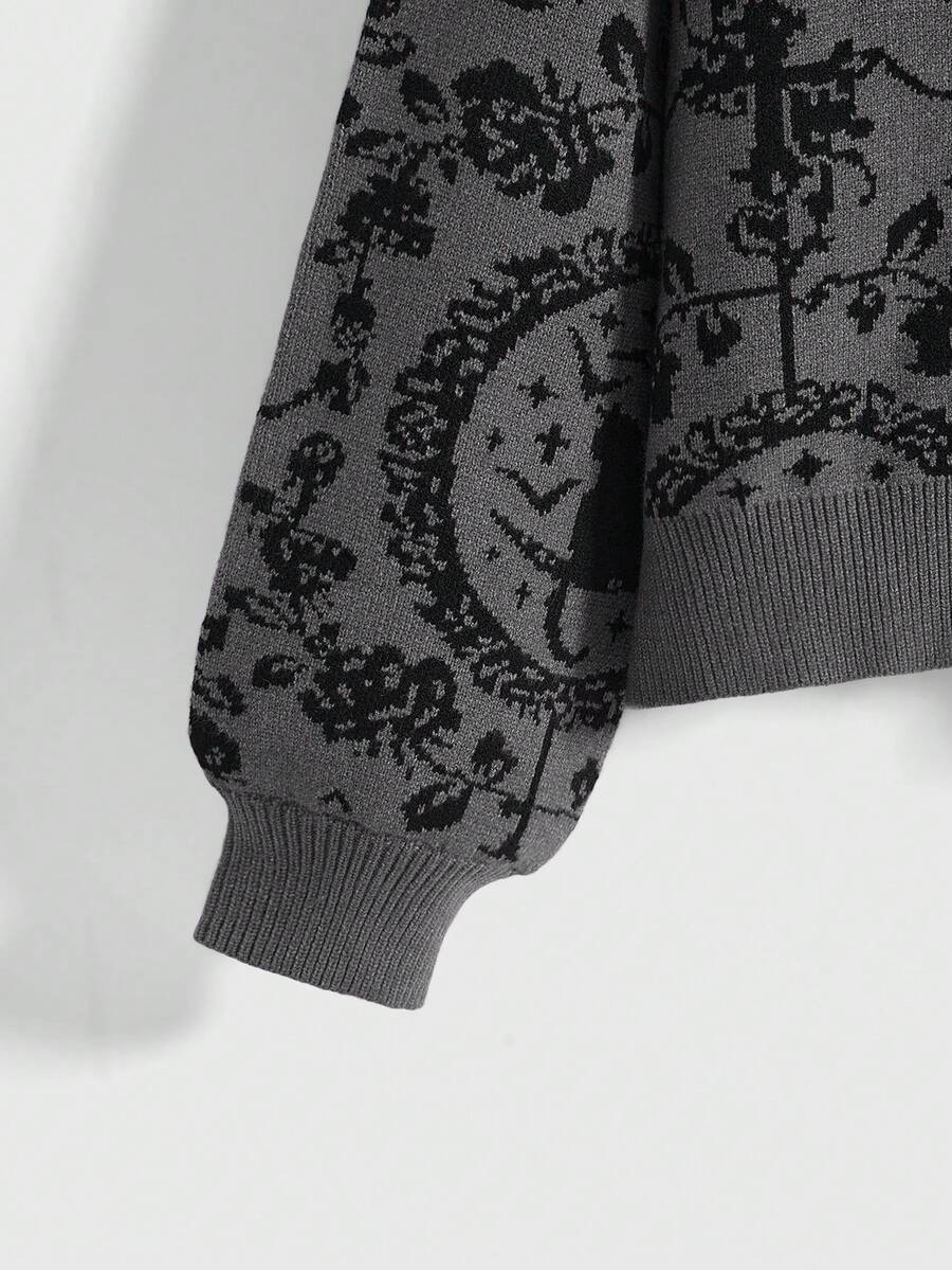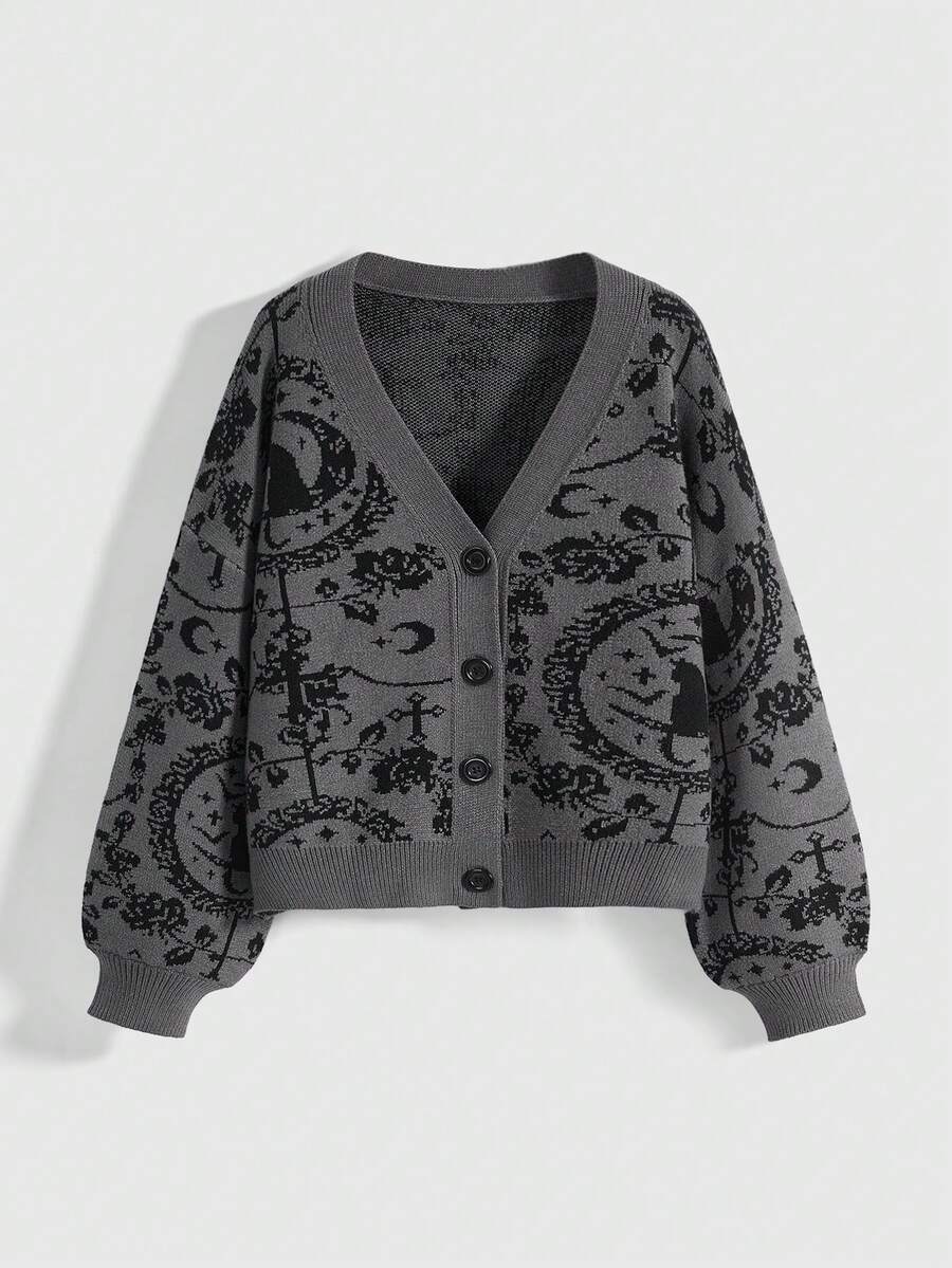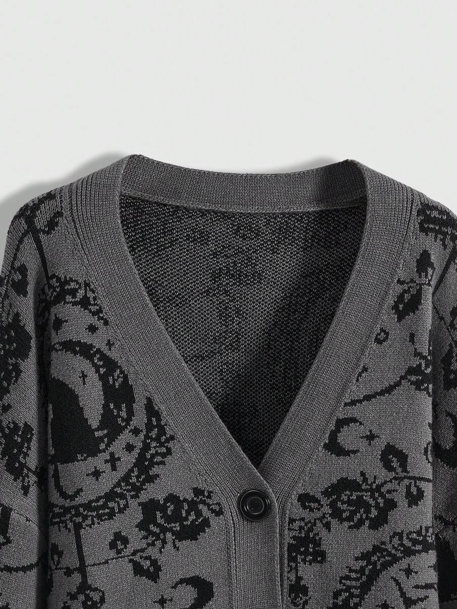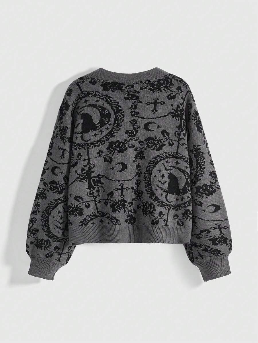 Gothic Palace Cat Moon Chain Mysterious Black Cat Full Print Dark Cardigan For Women