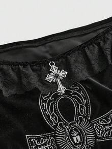 Goth Gothic Palace Style Cross Embroidery Lace Flare Sleeve Off-Shoulder Velvet Blouse For Women, Halloween