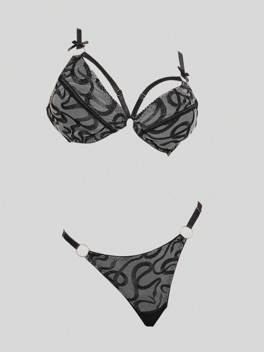 Gothic Snake Skin Embroidered Bralette And Thong Lingerie Set, Sexy And Intimate