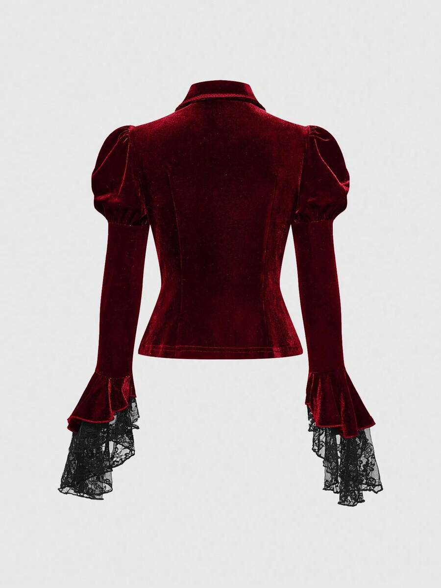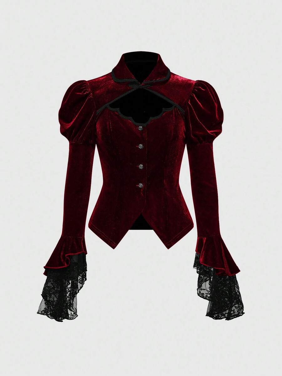 Gothic Style Christmas Palace Bat Collar Cross Pendant Flare Sleeve Velvet Lace Jacket