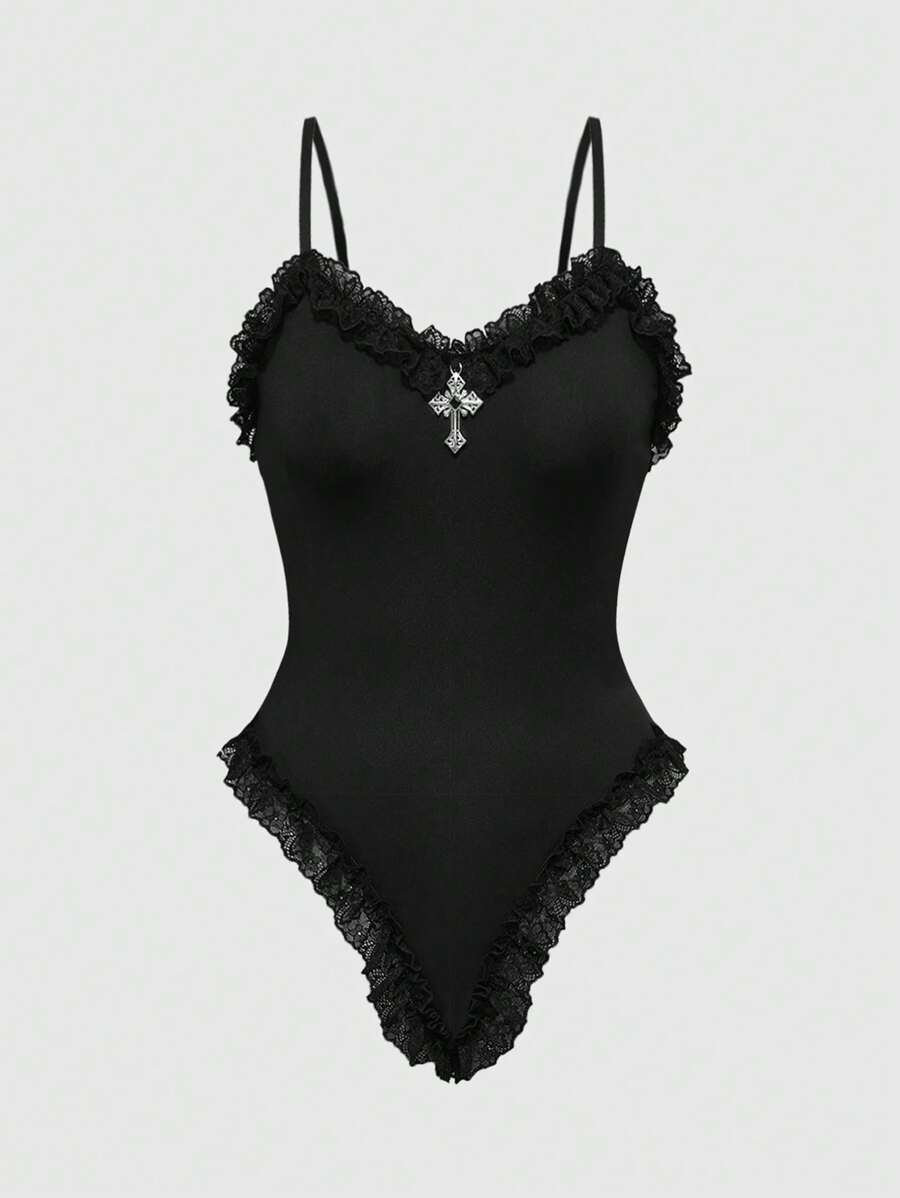 Gothic Style Lace Cross & Bow Decor Jumpsuit