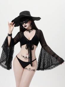 Gothic Vampire Count Hollow Out Lace Flare Sleeve Crop Kimono, Halloween