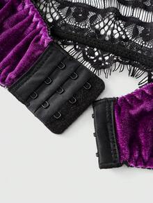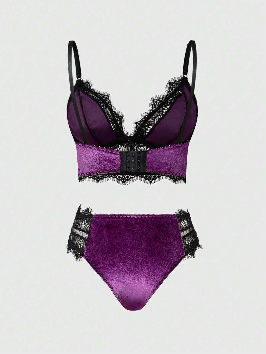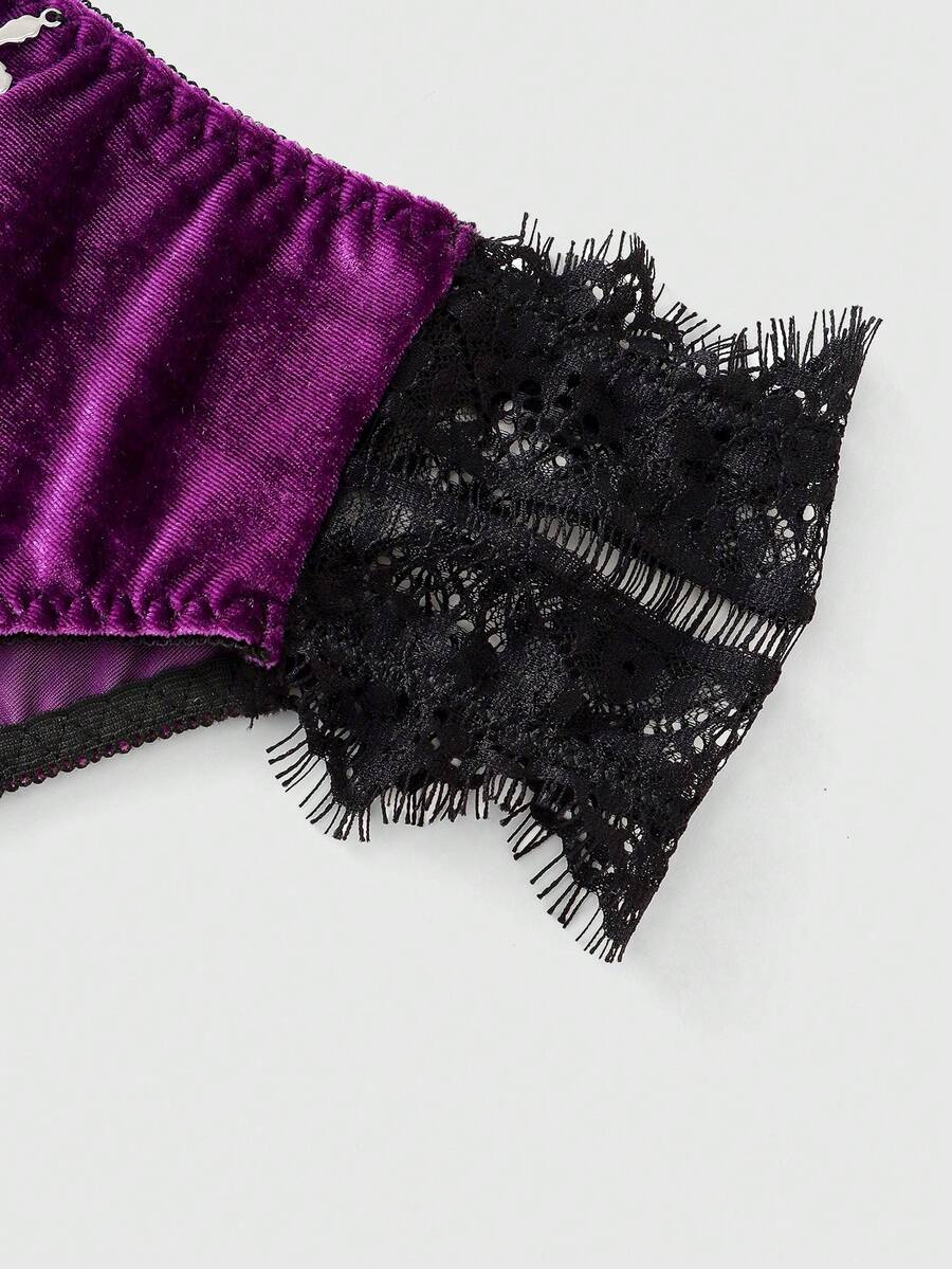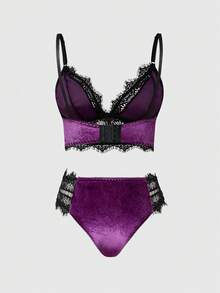 Gothic Velvet Lace Triangle Cup Bra & Thong Panty Set
