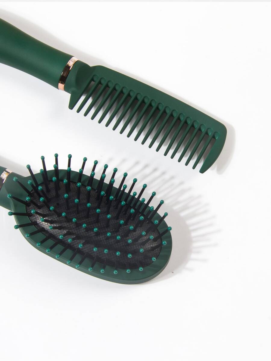 Green Dry & Wet Use Styling Comb Set/Kit Cushion Hair Brush 2pcs Kit Plastic Cute Glitter Oval Handheld Easy Storage Detangling Comb At Home Or On-The-Go Gift, Hair Brush/ Hair Comb