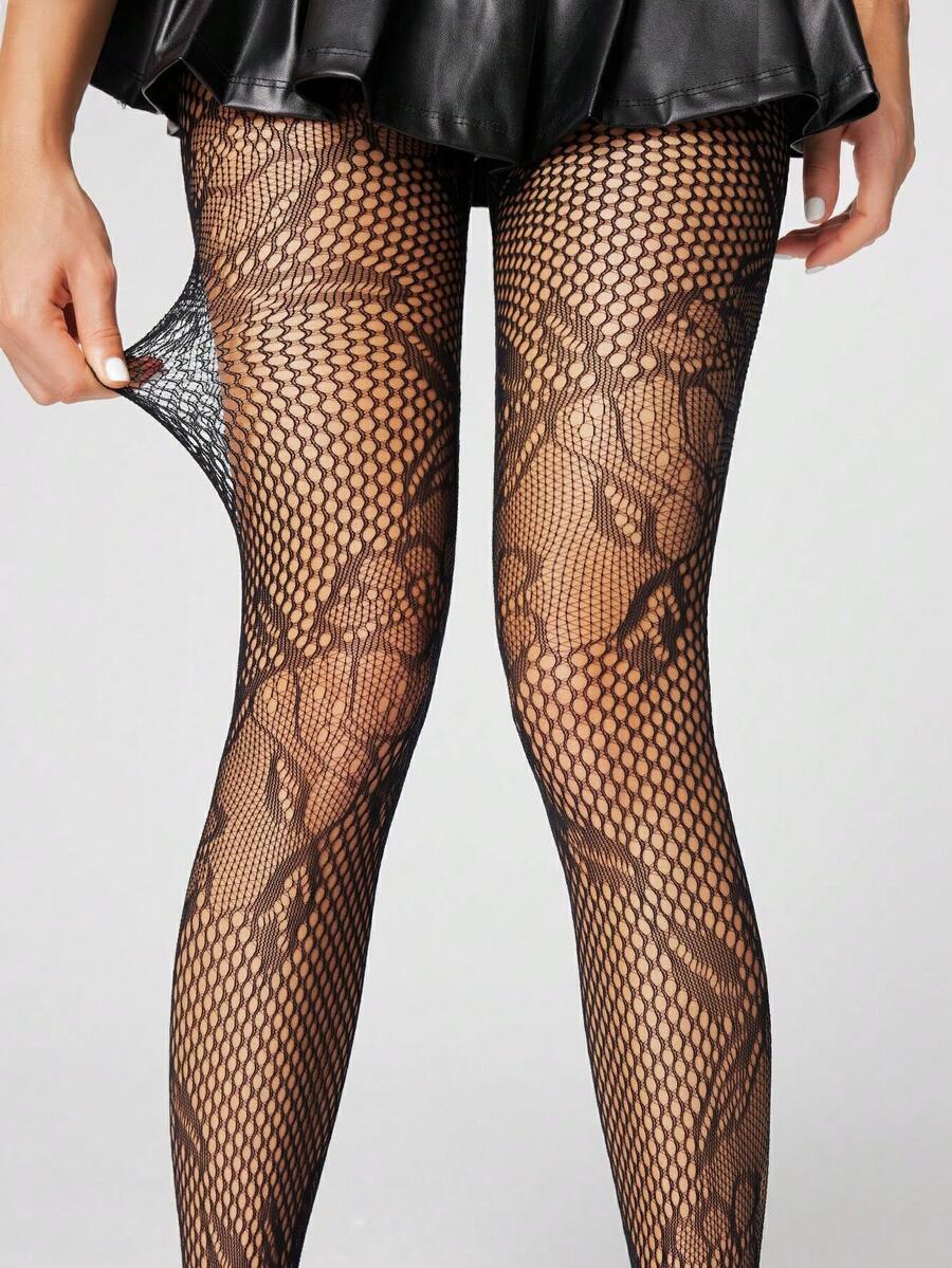 Grunge Punk 1 Pair Black Lace Floral Hollow Out Fishnet Stockings