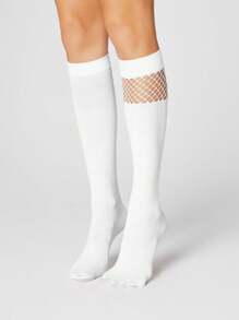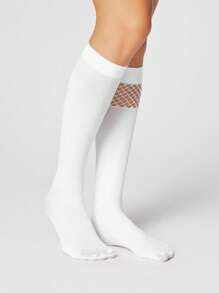 Grunge Punk 1 Pair Women Dark Gothic Rock Hollow-Out Splicing White Mid-Calf Socks, All Season