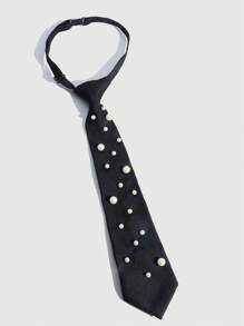 Grunge Punk 1 Pc Women's Cute College Style Pearl Decor Shirt Collar Scarf Tie, Neckwear Accessory