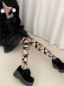 Grunge Punk 1pair All Seasons Girls' Black Ripped Fishnet Stockings Tights With Large Holes, Leg Slimming And Sexy