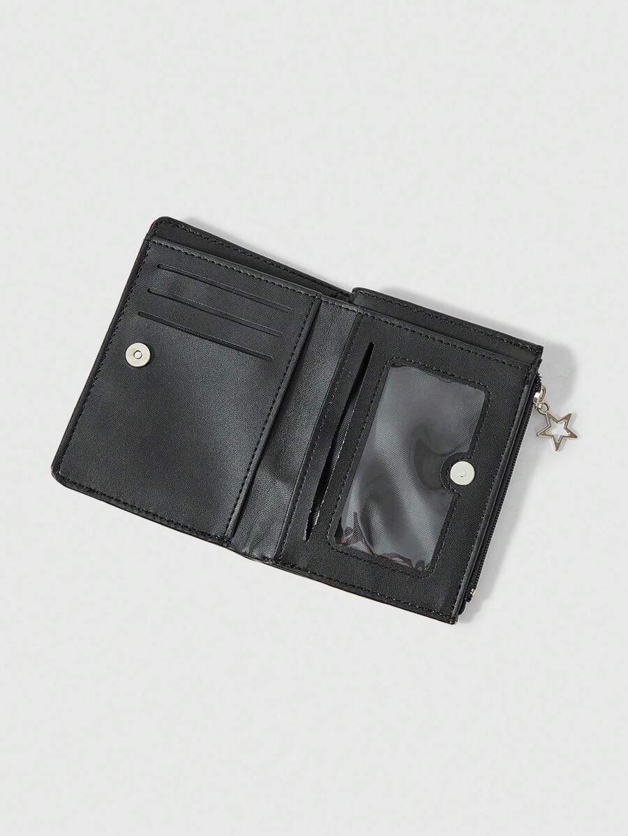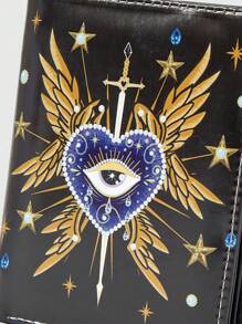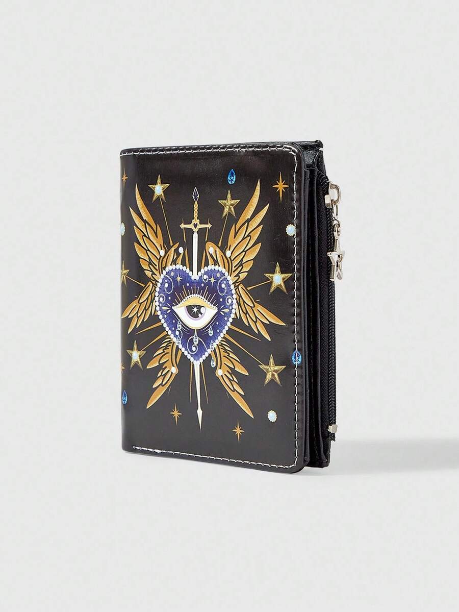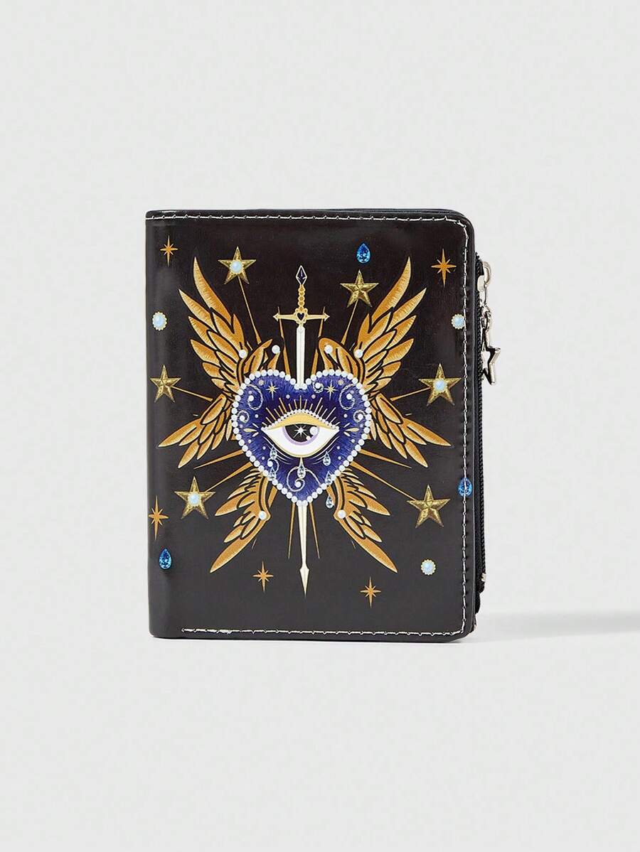 Grunge Punk 1pc Gothic Style Wallet With Heart, Teardrop Eye, Wing, Gemstone, Crystal, Star, Cross Sword Design, Multi-Functional Zipper Coin Purse, Suitable For Daily Use, Halloween