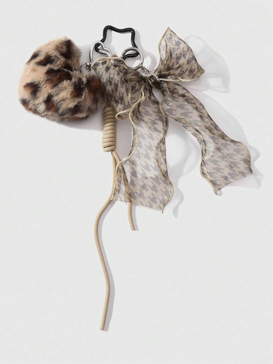 Grunge Punk 1pc Ins Style Creative Chic High-Quality Cheetah Leopard Plush Heart, Houndstooth, Tulle, Bow Adjustable Lanyard Keychain, Bag Pendant, Suitable For Women, Daily Wear, Festival Gift