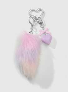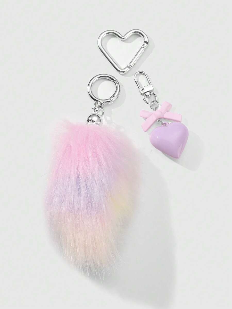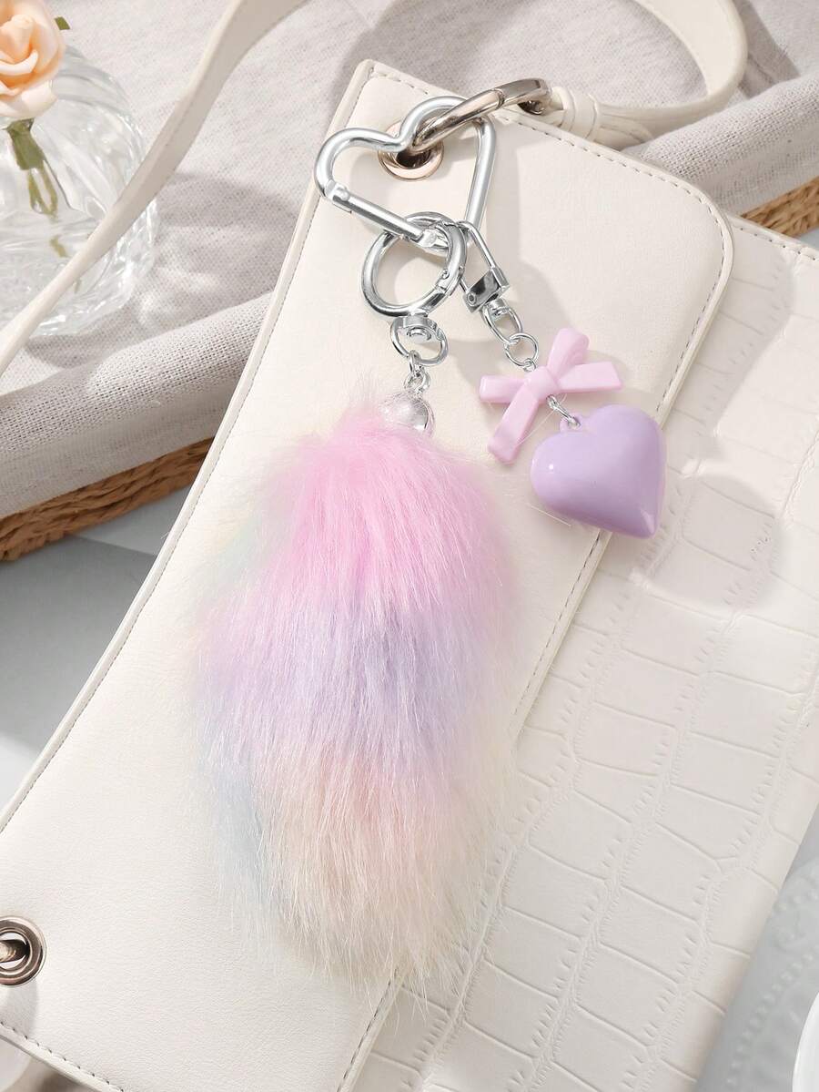 Grunge Punk 1pc Minimalist Multi-Color Faux Fur Animal Tail Mini Acrylic Heart & Bow DIY Keychain & Bag Charm, Fashionable Accessory For Women, Ideal For Daily Wear And Gifts