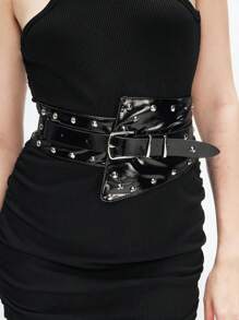 Grunge Punk 1pc Punk Rock Style Rivet Asymmetrical Wide Belt, Y2K Retro Fashion Glossy Metallic Buckle Leather Belt, Personalized Decorative Accessory Waistband
