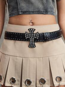 Grunge Punk 1pc Punk Style Cross Buckle Belt, Y2K Fashion Studded Metal Buckle Leather Belt, Personalized Decoration Accessory