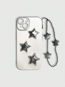 Grunge Punk 1pc Punk Style Silver 3d Star Plated Phone Case, Full Coverage Tpu Material Cover With High-End Star Chain, Compatible With Apple 13/14/15 Pro Max