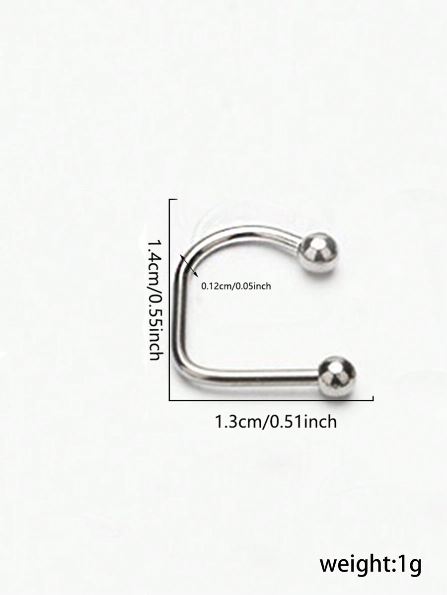 Grunge Punk 1pc Stainless Steel D-Shaped Lip Ring, Lip Stud, Ball Size Mix, Piercing Jewelry Set For Men And Women