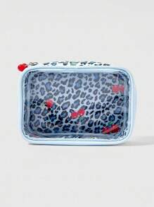 Grunge Punk 1pc Vintage Y2K Style Leopard & Cherry Portable Cosmetic Bag For Women