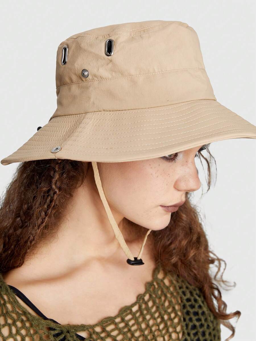 Grunge Punk 1pc Women Drawstring Decor Bucket Hat