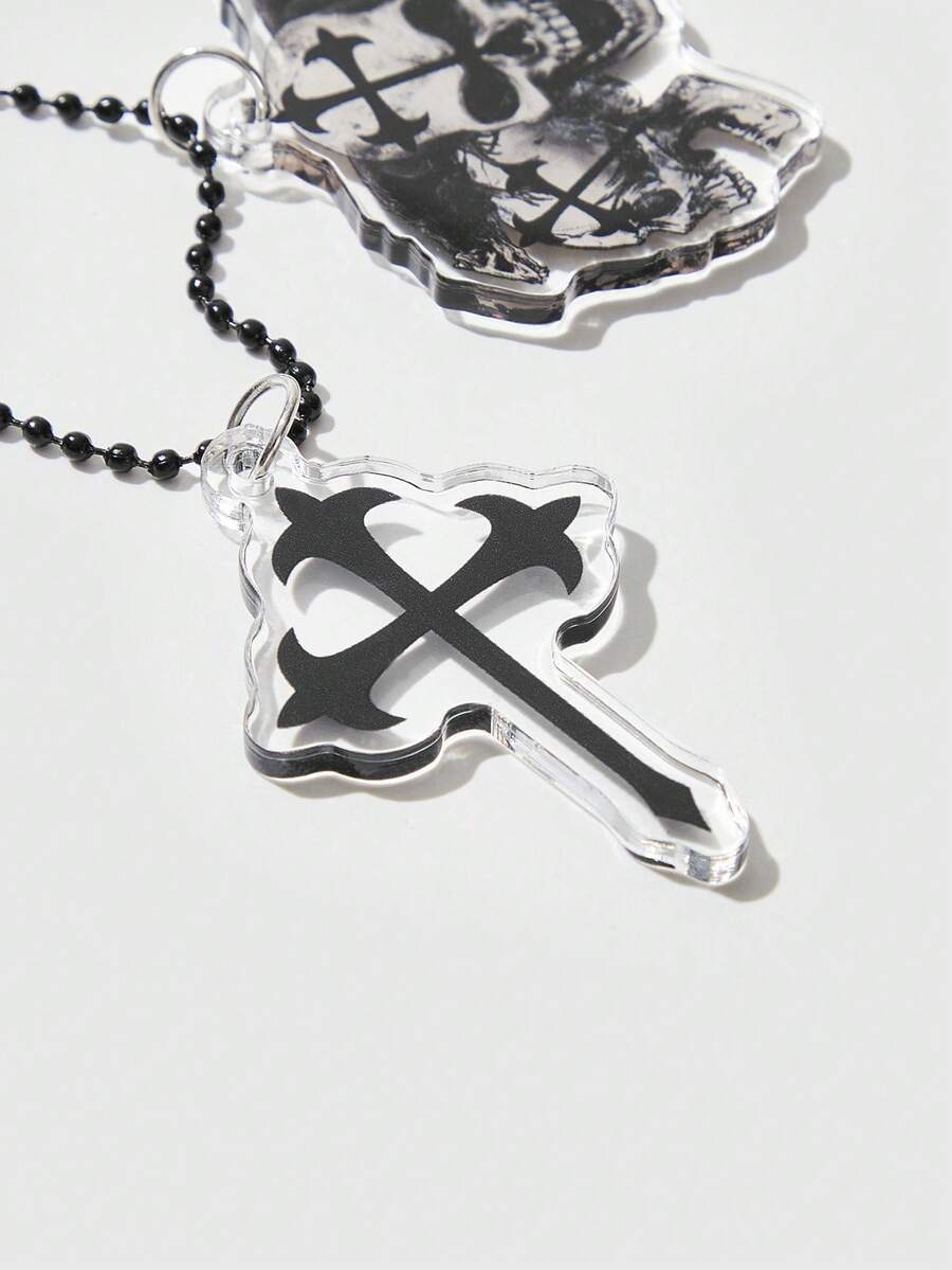Grunge Punk 1pc Women Skull & Cross Charm Keychain