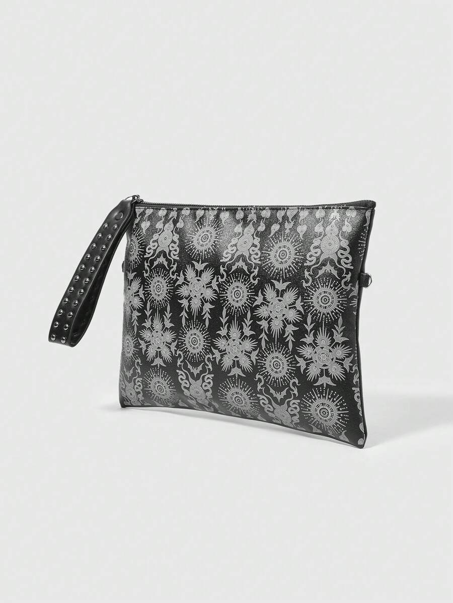 Grunge Punk 1pc Women's Clutch Bag With Sunflower Pattern Print And Rivet Decoration