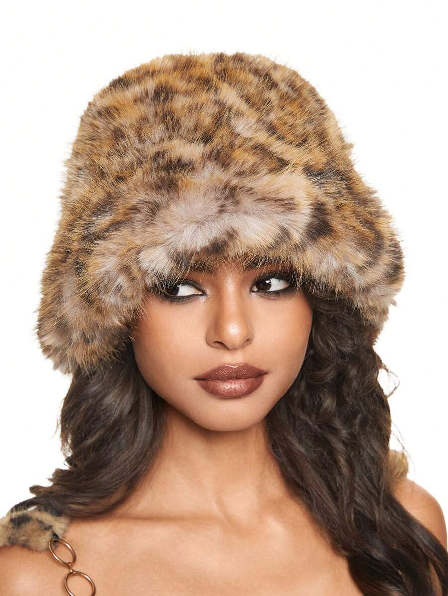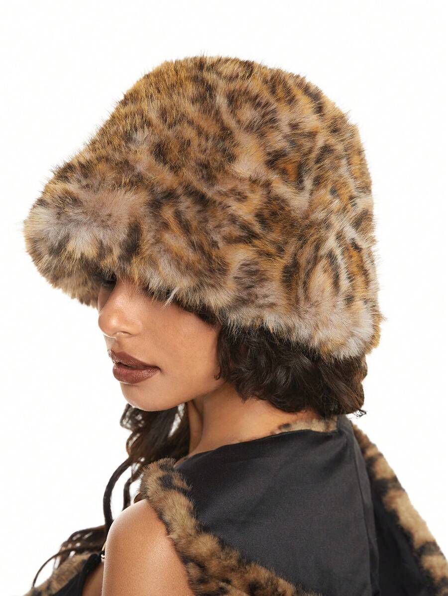 Grunge Punk 1pc Women's Cute Basic Leopard Fuzzy Beanie Hat, Casual