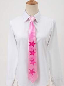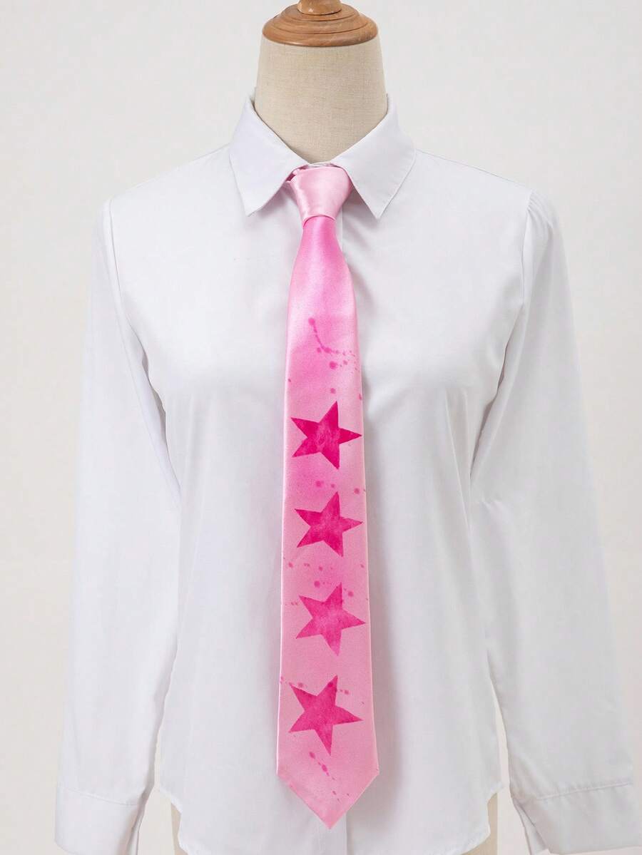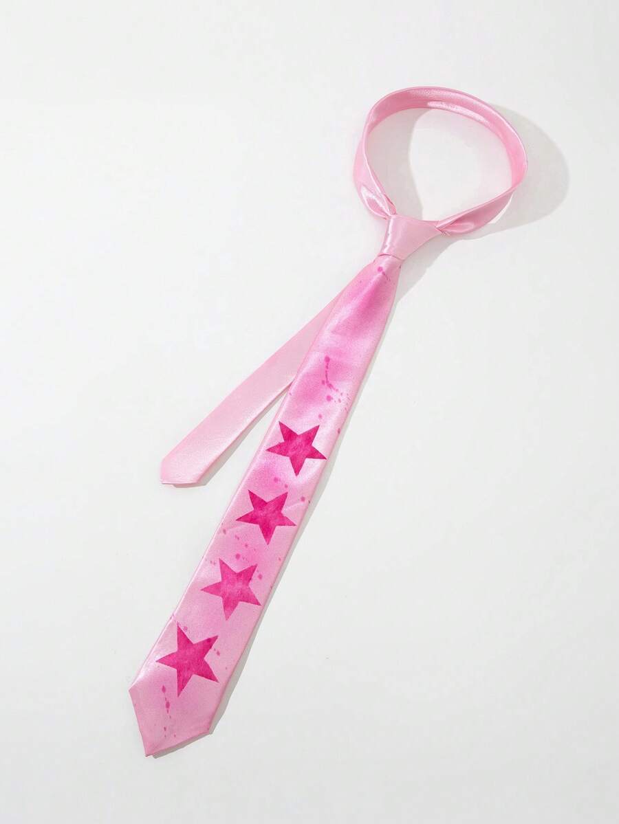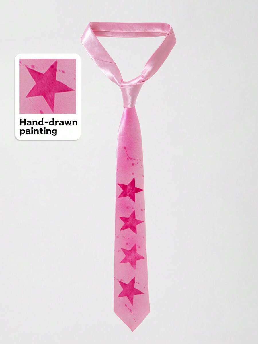 Grunge Punk 1pc Women's Fashion Hand-Painted Pink Y2K Necktie With Star Design