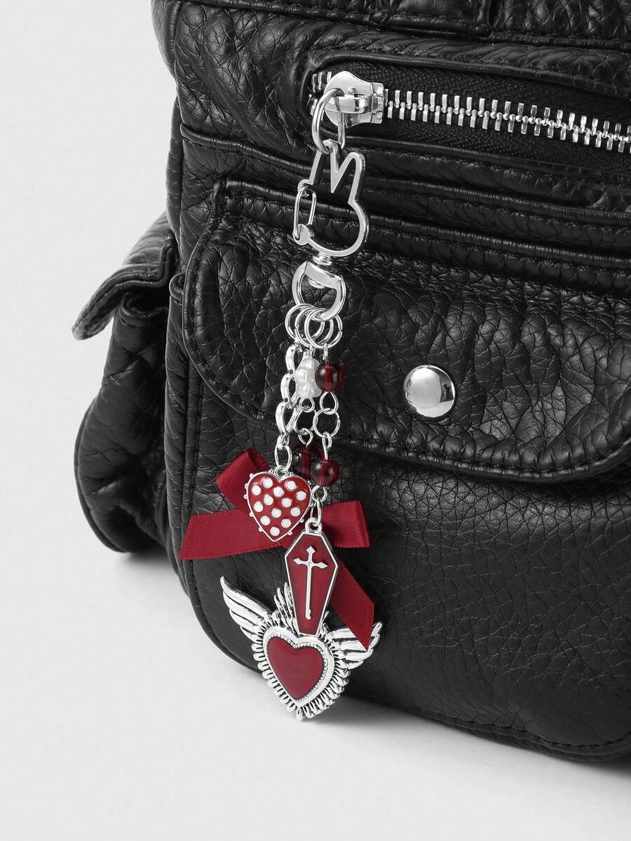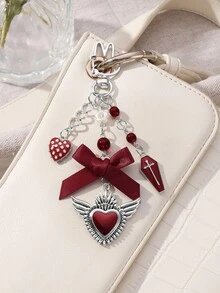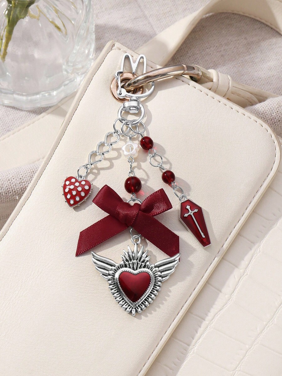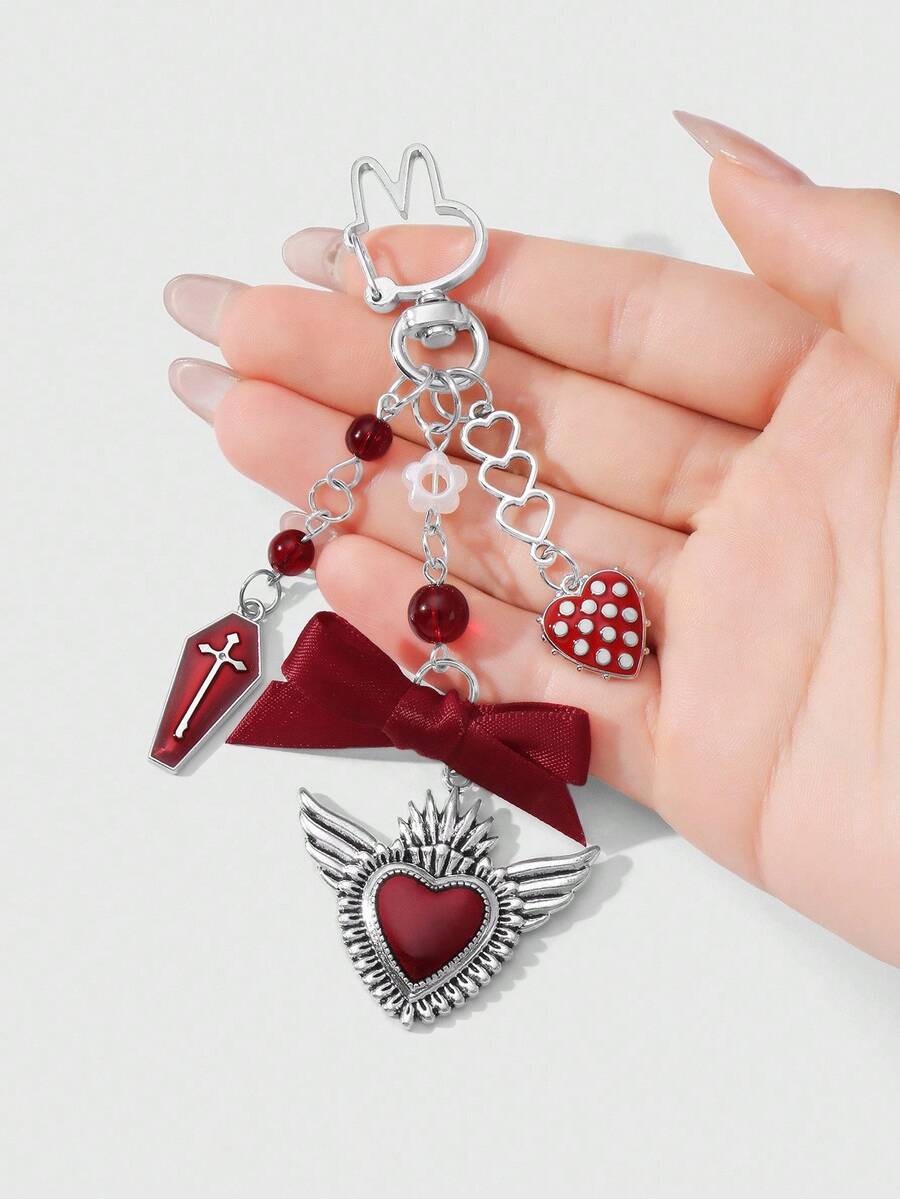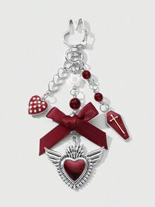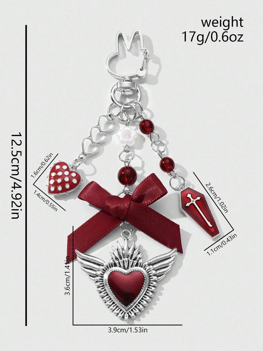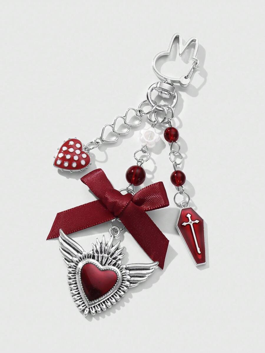 Grunge Punk 1pc Y2K Creative Sweet & Cool Vintage Fashion Unique Red Resin Bead Coffin Drip Oil Cross Ribbon Bow Hollow Wing Heart DIY Keychain & Keyring Bag Charm, Suitable For Women, Daily Wear, Holiday Gift
