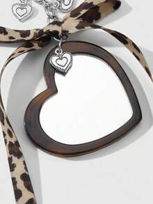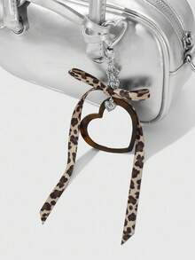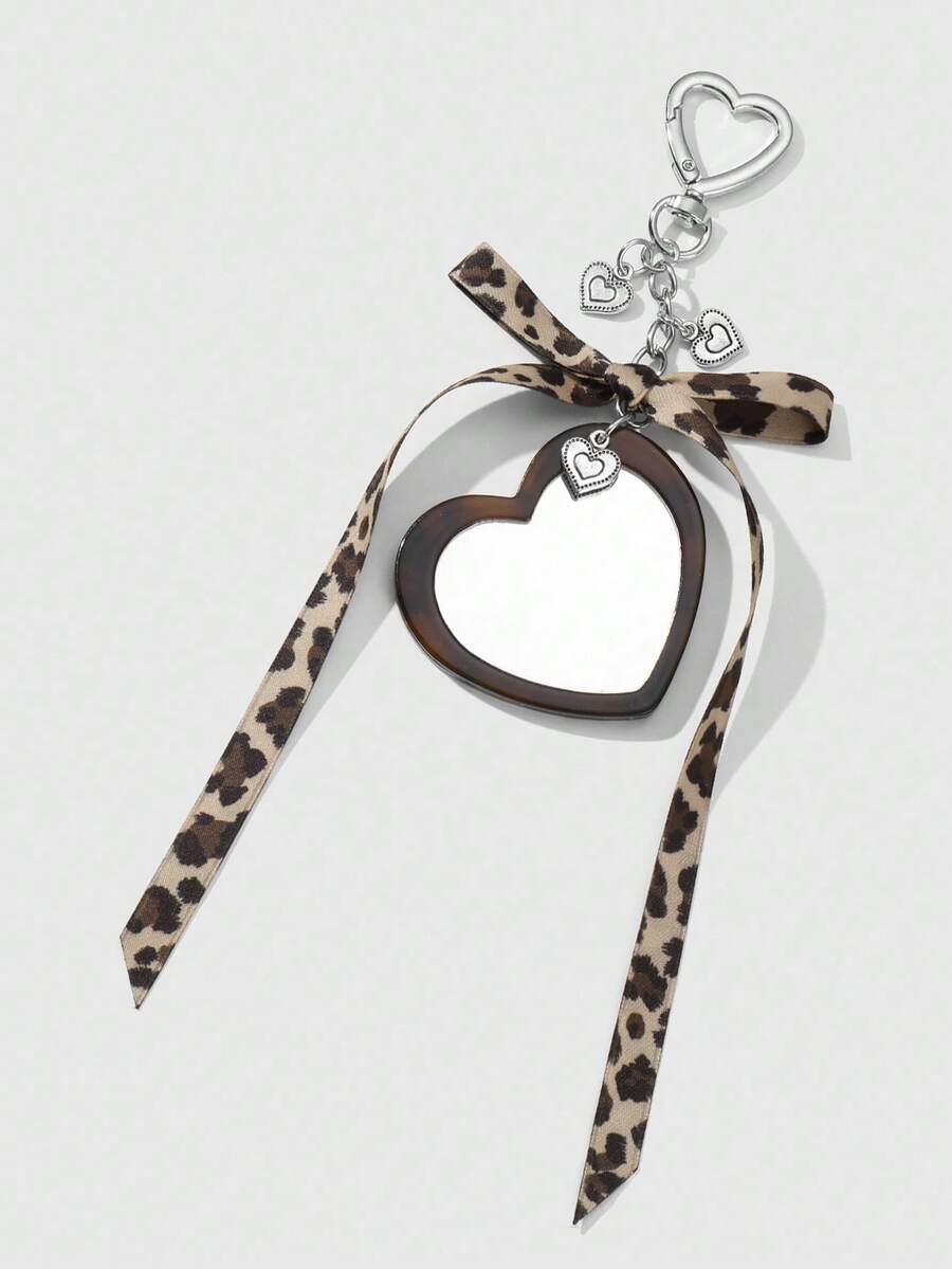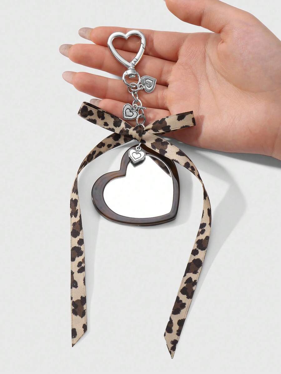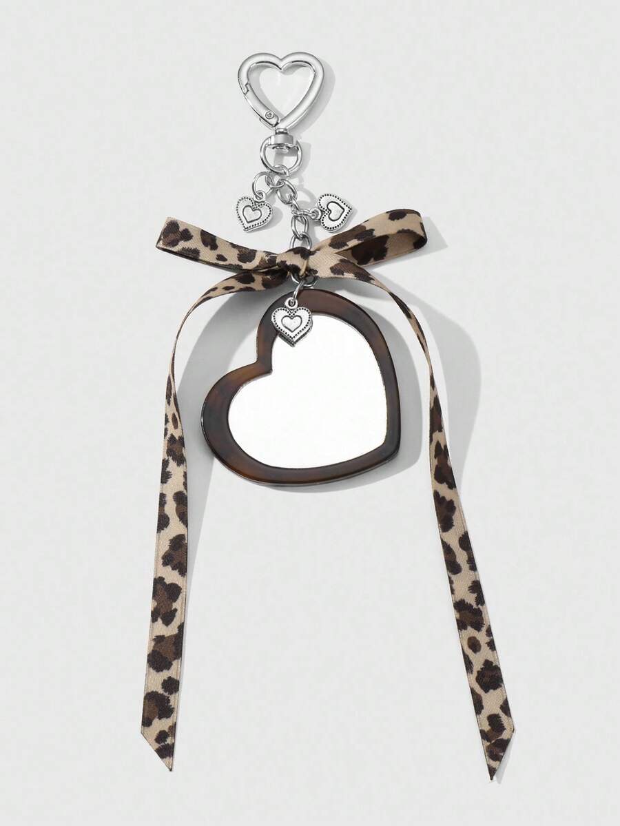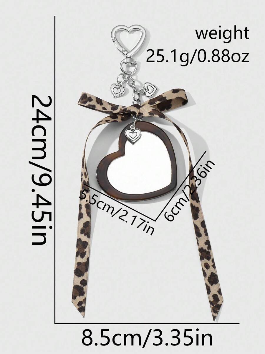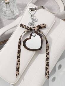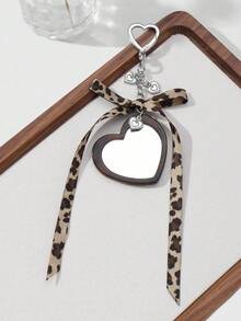 Grunge Punk 1pc Y2K Retro Chic Personalized Fashion Simple Elegant Brown Leopard Print Ribbon Bow Acrylic Glass Heart DIY Keychain Bag Pendant, Suitable For Girls/Women Daily Wear, Holiday Gift