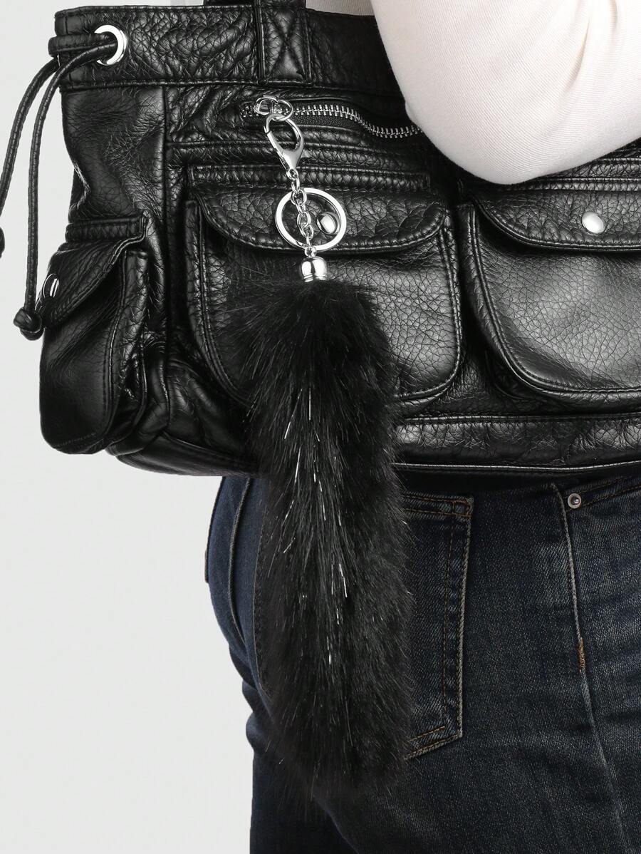 Grunge Punk 1pc Y2K Retro Gothic Elegant Dark Glitter Faux Fur Animal Tail, Fashion Accessory