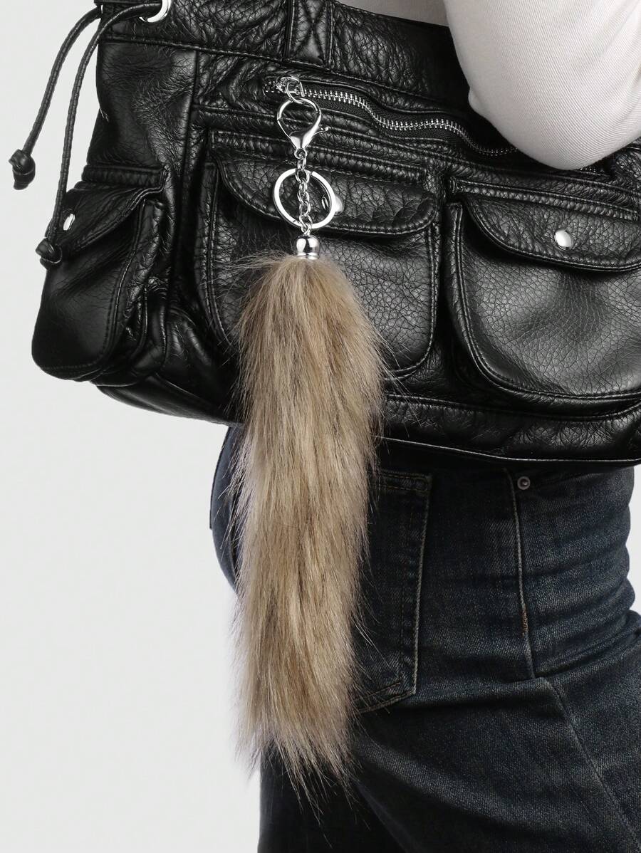 Grunge Punk 1pc Y2K Stylish Unique Cute High-Quality Brown Ombre Plush Faux Animal Tail Keychain & Bag Charm, Suitable For Women Daily/Holiday Gift