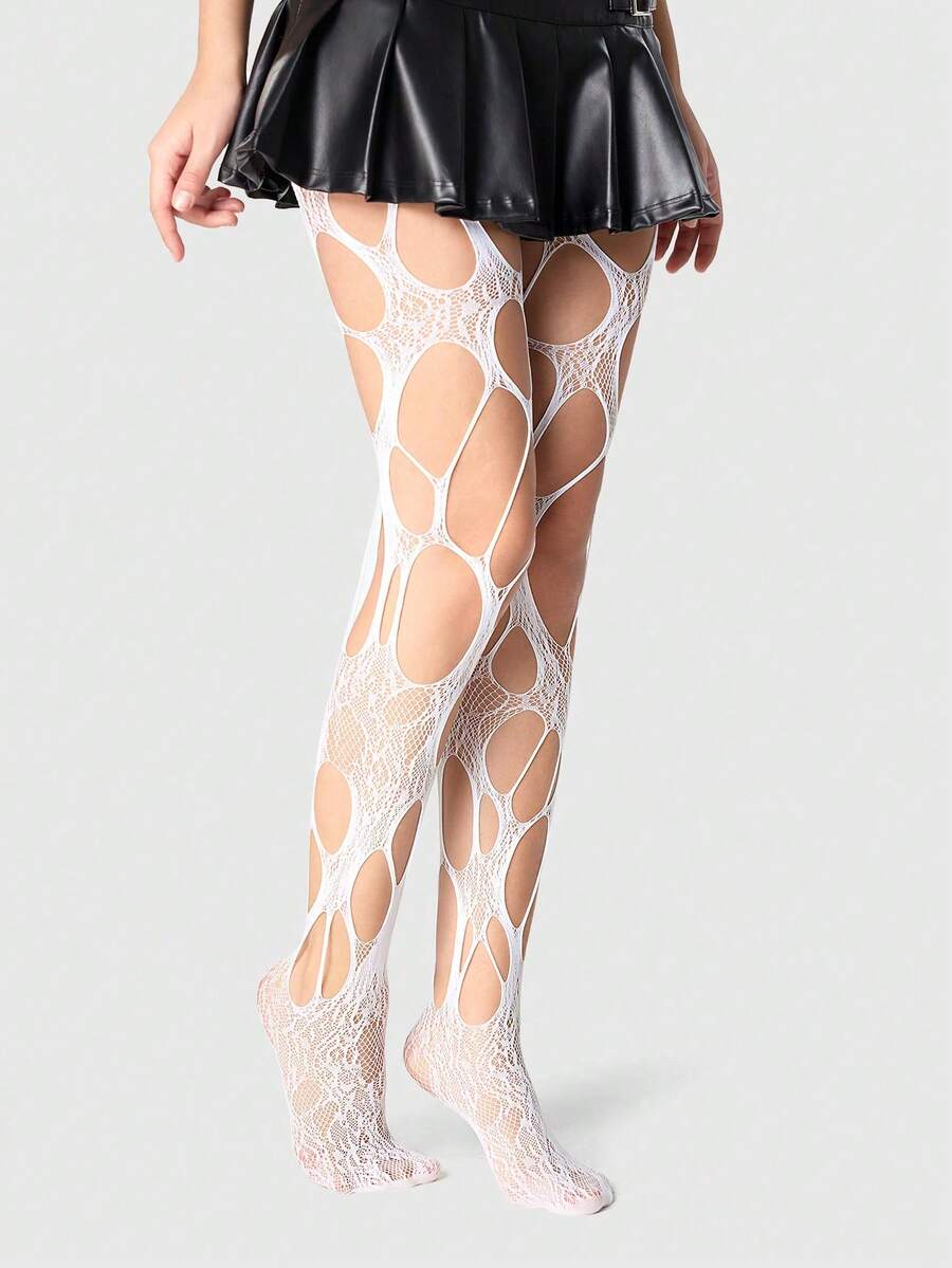 Grunge Punk 2 Pairs Women Dark Color Torn Hole & Fishnet Socks, Suitable For All Seasons