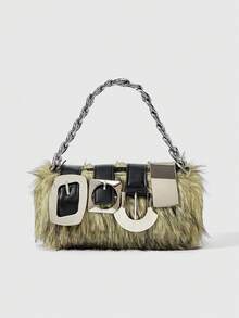 Grunge Punk 2000s Style Women Handbags,Punk Rivet Biker Bags,Metal Chain Bag,Fur Purse ,Autumn & Winter Wallets(Random Pattern)