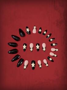 Grunge Punk 24pcs Almond Star Print Fake Nail & 1pc Nail File & 1sheet Tape