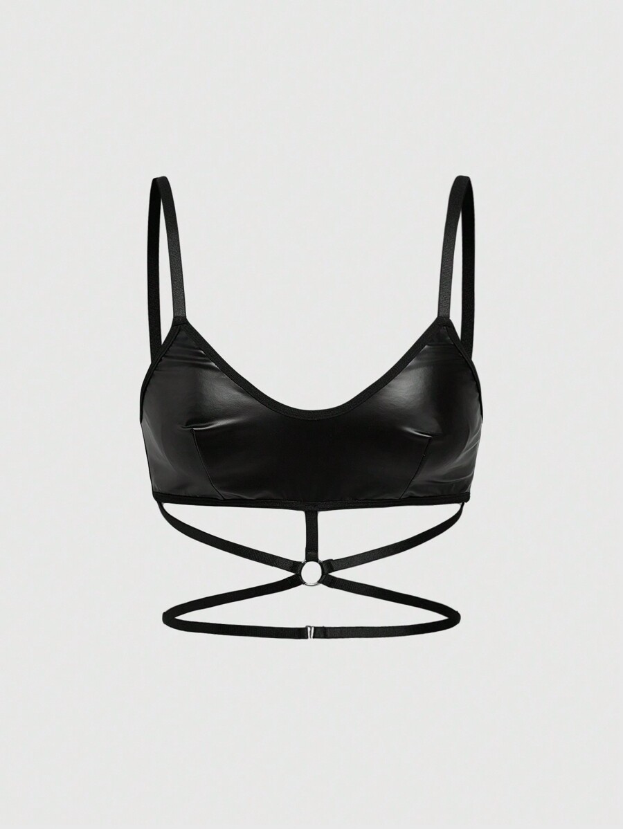 Grunge Punk 2pcs/Set Dark Punk Style PU Tank Top And Thong Panty Sexy Lingerie Set