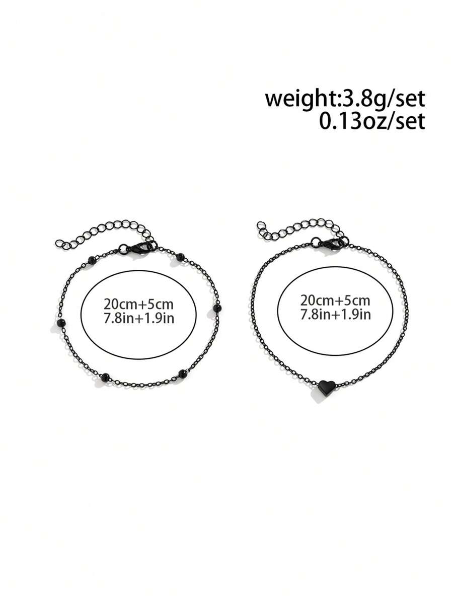 Grunge Punk 2pcs/Set Fashionable Punk Style Minimalist Heart Pendant Anklet, Suitable For Holiday And Gift Giving