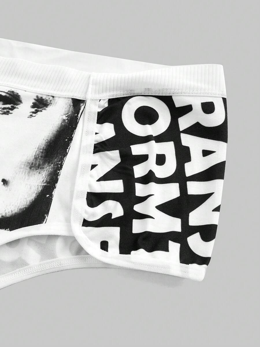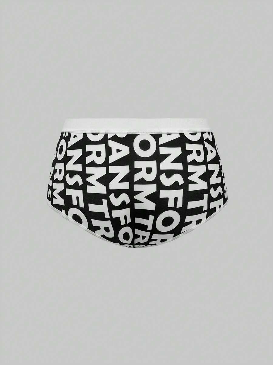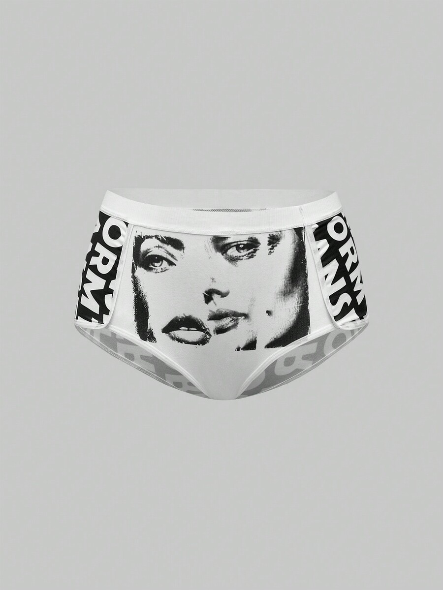Grunge Punk 2pcs/Set Women Dark Punk Elastic Waistband Letter Eye Character Print Patchwork Triangle Underwear