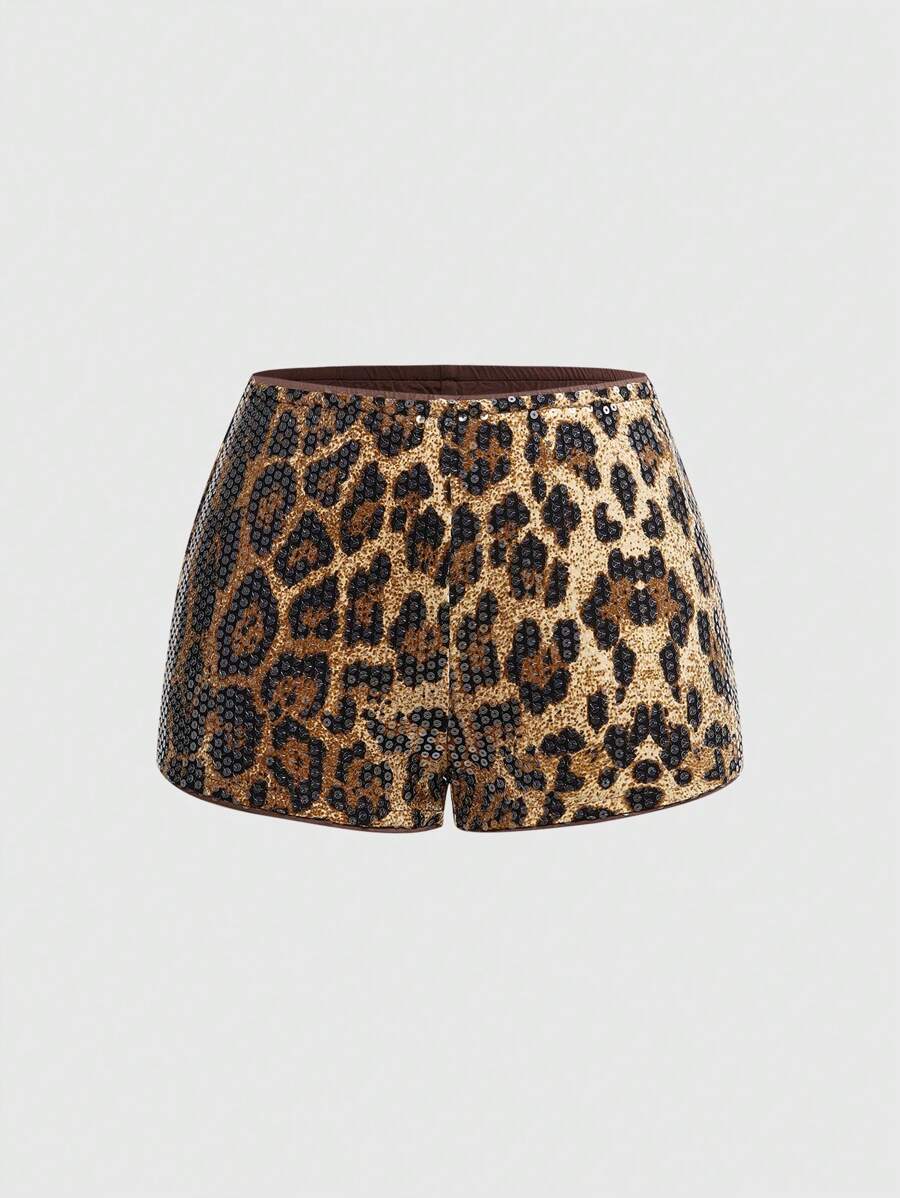 Grunge Punk 2pcs/Set Women Solid Scoop Neck Tank Top And Leopard Printed Shorts