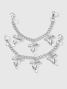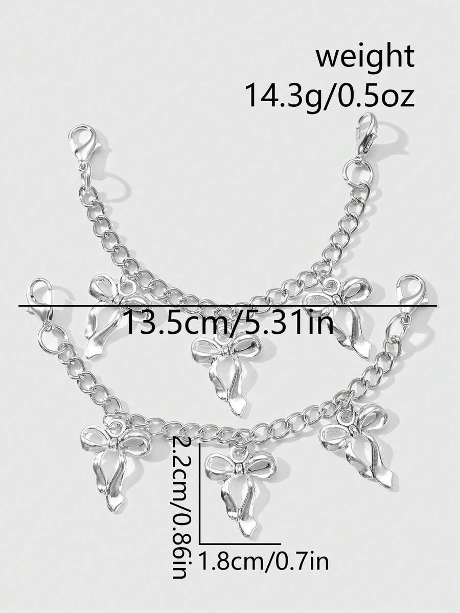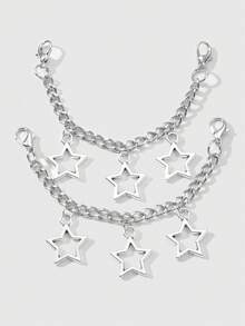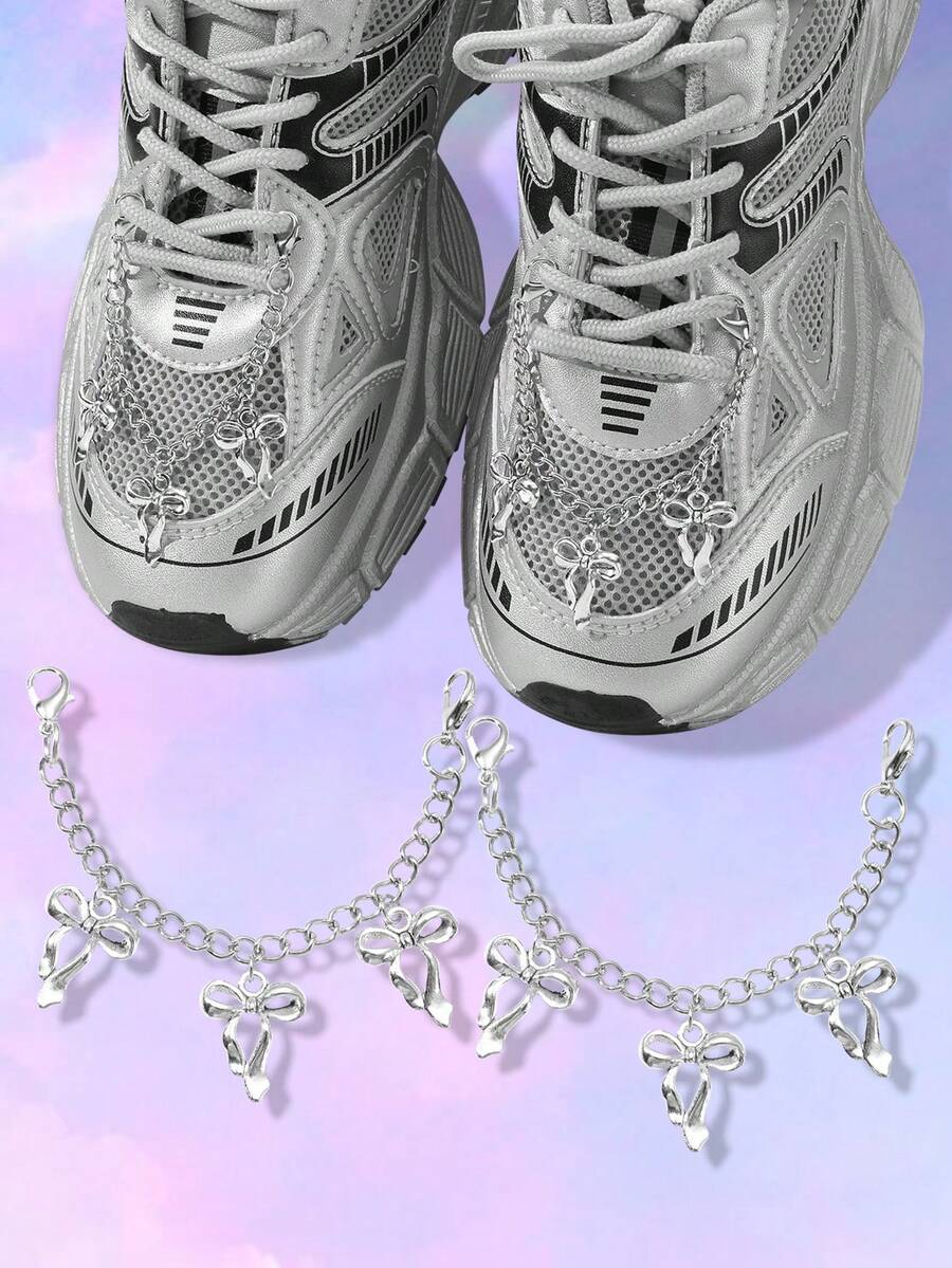 Grunge Punk 2pcs Y2K Chic Minimalist Stylish High-Quality Silver Hollow Star/Bow-Knot Pendant DIY Shoelace Shoe Decoration Combination Set, Suitable For Women Daily Wear, Holiday Gift