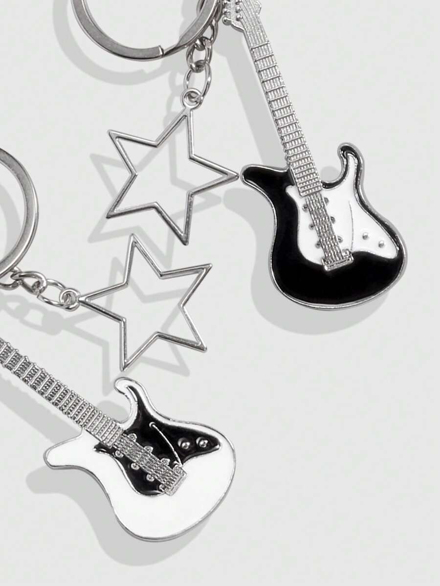 Grunge Punk 2pcs Y2K Guitar Keychain, Suitable For Couples Or Friendship Keychains