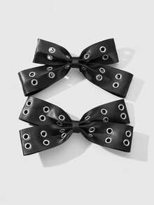 Grunge Punk 2pcs Y2K Vintage Punk Goth Style Black Leather Double Air Vent Bow Decor DIY Hair Clips, Spring Clamps Ponytail Holder Set, Suitable For Sisters, Friends, Daily Wear, Holiday Gifts