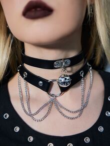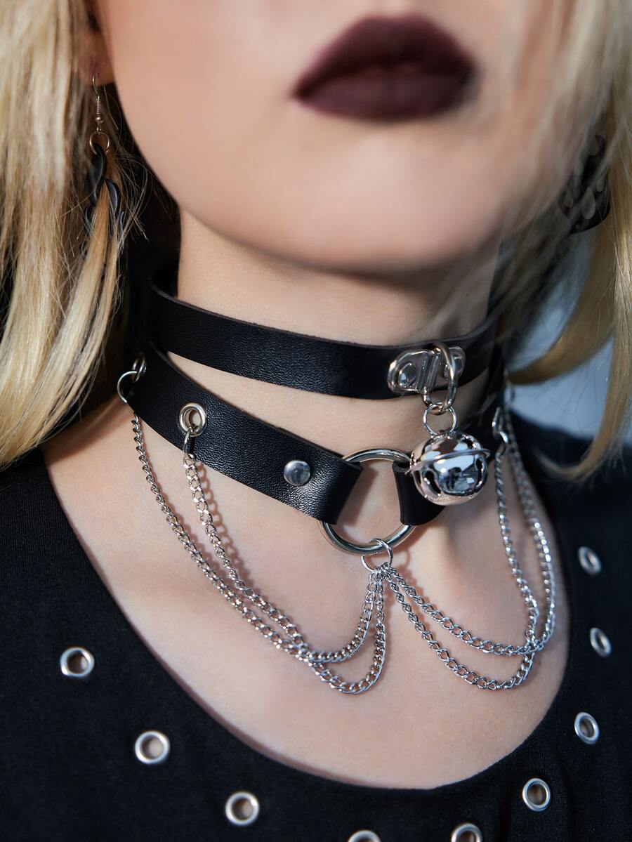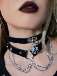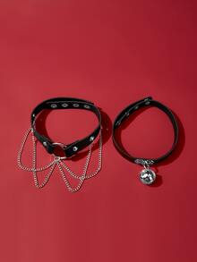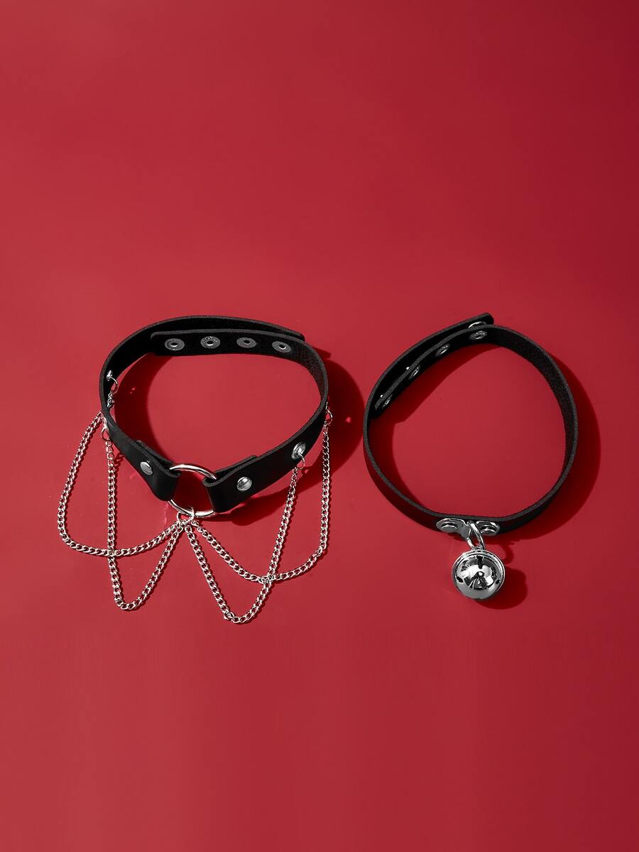 Grunge Punk 2pcs/set Chain & Bell Charm Choker